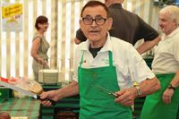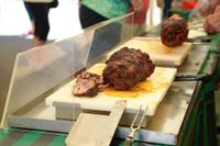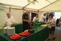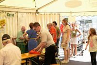 Der Aufwand, den die Helfer der Fußballabteilung des GSV dafür betreiben, ist enorm: Für die unzähligen Bleche Zwiebelkuchen, die Isolde Klauß und ihr 15-köpfiges Team während der drei Tage backen und dabei rund 300 Kilo Hefeteig verarbeiten, dämpft Eberhard Fritsch am Mittwoch zehn Stunden lang über 200 Kilo Zwiebeln. Nicht minder aufwendig gestaltet sich die Zubereitung von über 200 Kilo Spießbraten, der „durch diese besondere Zubereitungsart außen besonders knusprig wird, dabei innen sehr saftig bleibt“, wie Werner Klauß schwärmt.