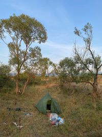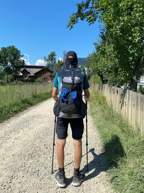 In den 48-Liter-Rucksack packt er das Zweimannzelt, die Isomatte, den Schlafsack und die Campingkocher samt Gaskartusche, den Topf und ein paar Klamotten, Wasserfilter und eine Zahnbürste. Wechselschuhe braucht er nicht, die Hoka-Schuhe tragen ihn bis ins Ziel. Die ersten vier Tage läuft seine erste Begleiterin Gabriela mit, am zweiten Tag bekommt er einen Sonnenstich und muss sich übergeben. Es geht durch Naturschutzgebiete und über Landstraßen, durch kleine Dörfer und Weltstädte wie Budapest und Wien.