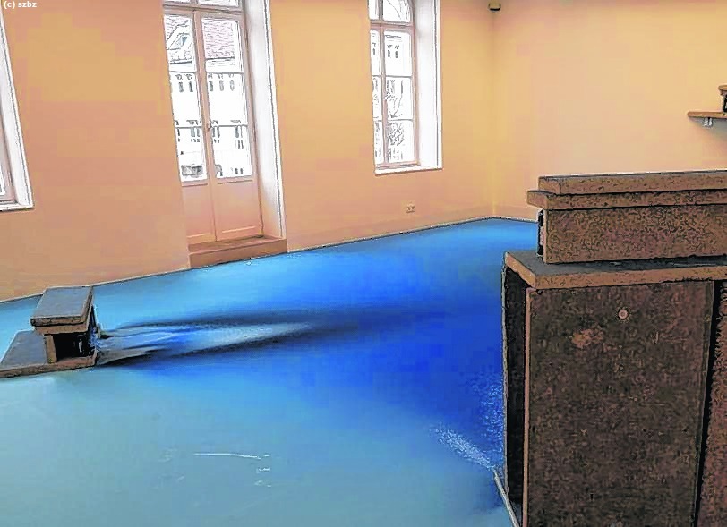 Gleichermaßen schön wie befremdlich, bizarr und rätselhaft ist, was Sophie Innmann im Hauptausstellungsraum des ersten Stocks geschaffen hat. „Selfie“ heißt ihre Installation, die bis auf einen schmalen Streifen Fußboden, von dem der Besucher aus das Werk betrachten darf, den gesamten Boden und einen Teil der Seitenwand in Beschlag nimmt.