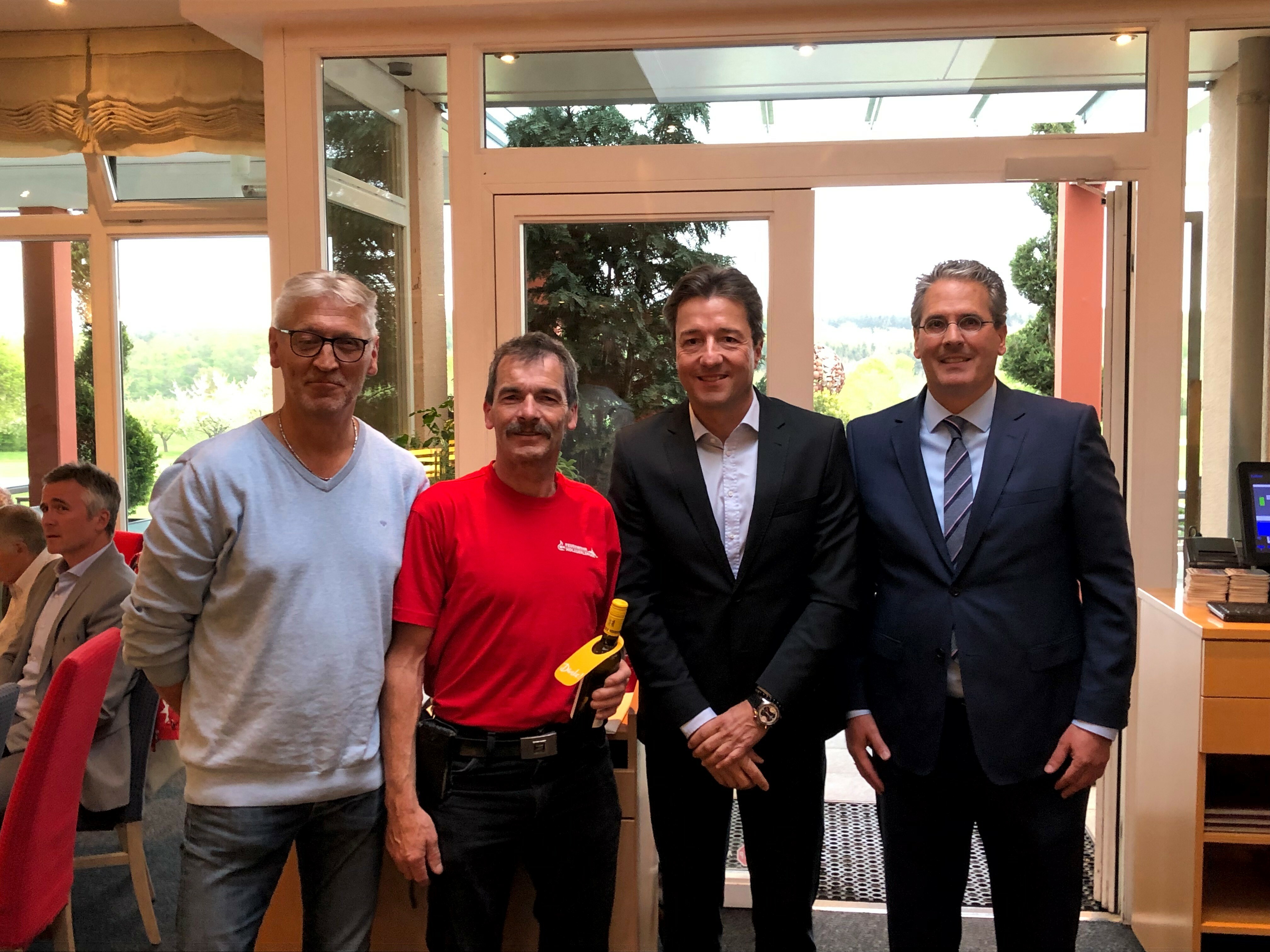 Golfclub-Präsident Jürgen Schmidt begrüßte als Gastgeber die zahlreichen Helfer von Feuerwehr, THW und DRK sowie Vertreter vom Landratsamt und den umliegenden Gemeinden, welche in der Brandnacht mit rund 240 Einsatzkräften dank ihres schnellen und beherzten Eingreifens ein Übergreifen der Flammen auf umliegende Gebäude verhindern konnten.