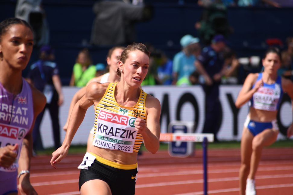 Carolina Krafzik, 400-Meter-Hürdenläuferin des VfL Sindelfingen, qualifizierte sich bei der Leichtathletik-EM in München für das Finale und wurde Achte.