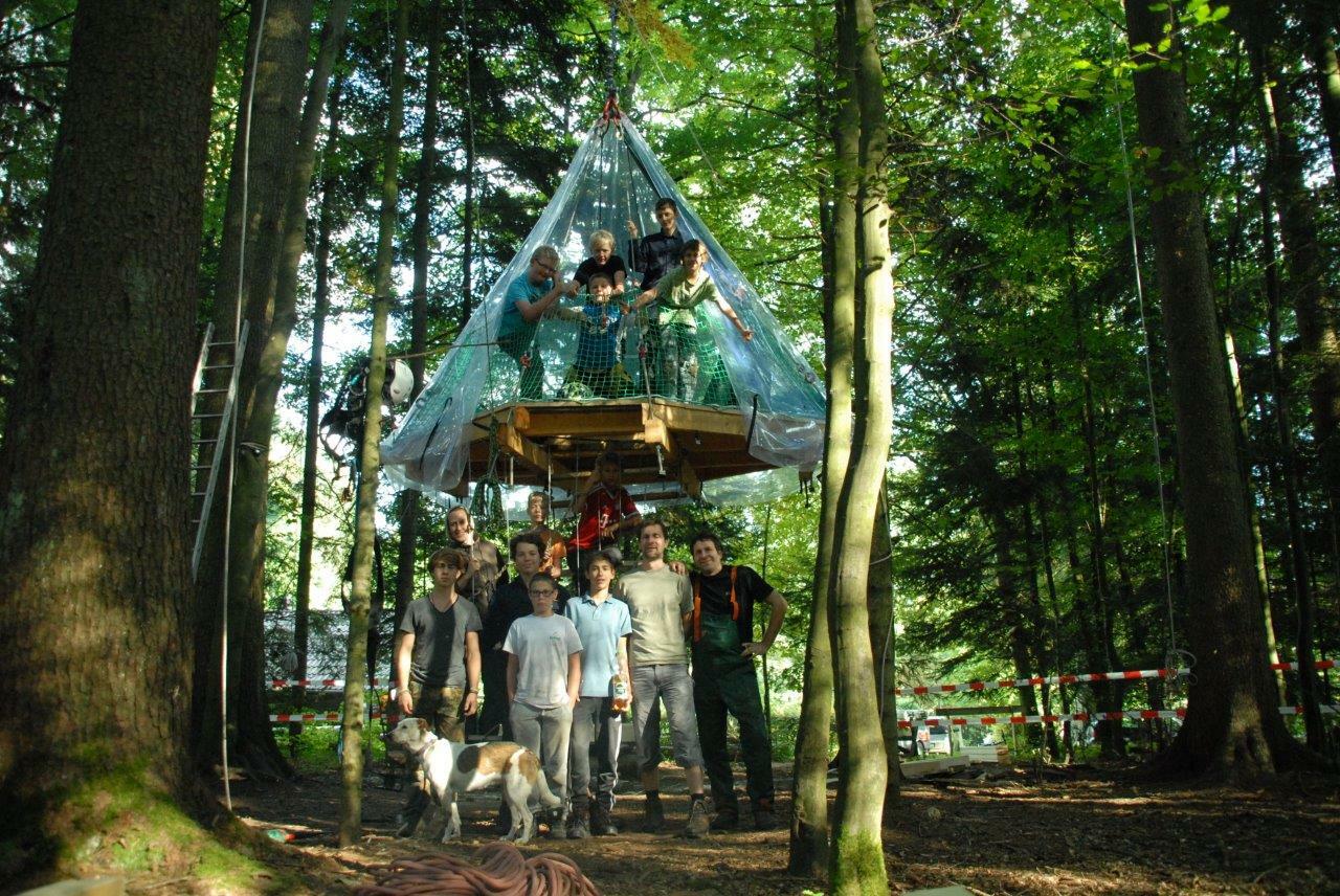 Neben privaten Vorhaben werden auch kommunale Projekte von der LEADER-Aktionsgruppe Nordschwarzwald gefördert – wie beispielsweise die Errichtung eines Baumhauses in Bad Teinach-Zavelstein. Dieses Bild zeigt einen Prototypen und entstand im Jahr 2014.