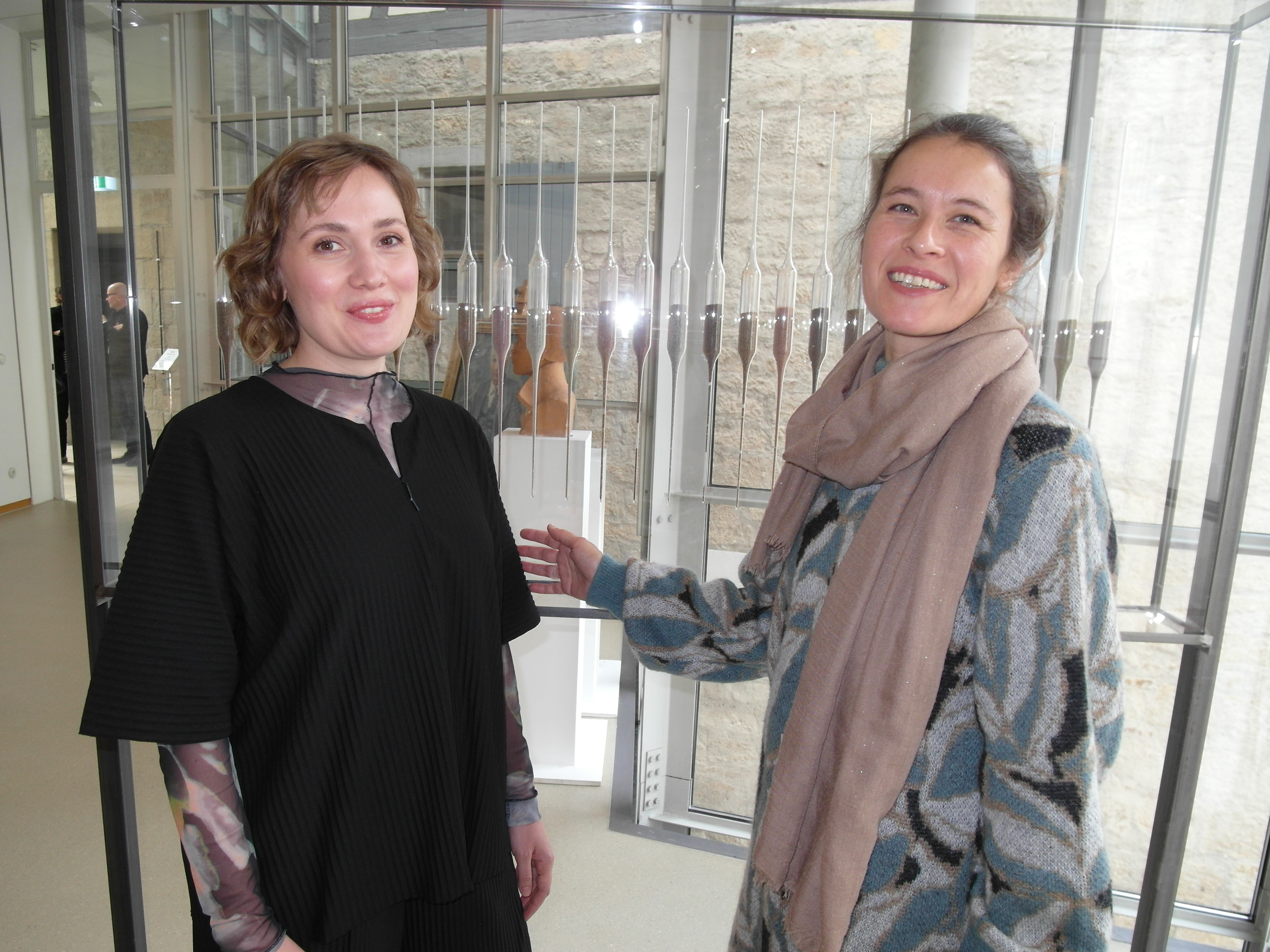 Im Rahmen des während der Corona-Krise vom Ministerium für Wissenschaft, Forschung und Kunst aufgesetzten Kunst-Förderprogramms ist die Installation "Digging Deeper" der in Böblingen geborenen Künstlerin Hannah Zenger (links) entstanden, die von der Leiterin der Städtischen Galerie Böblingen Corinna Steimel (rechts) zur Aufnahme in das Förderprogramm vorgeschlagen worden war - die Installation ist ab sofort in der Dauerausstellung der Galerie zu sehen. Bild: Staber