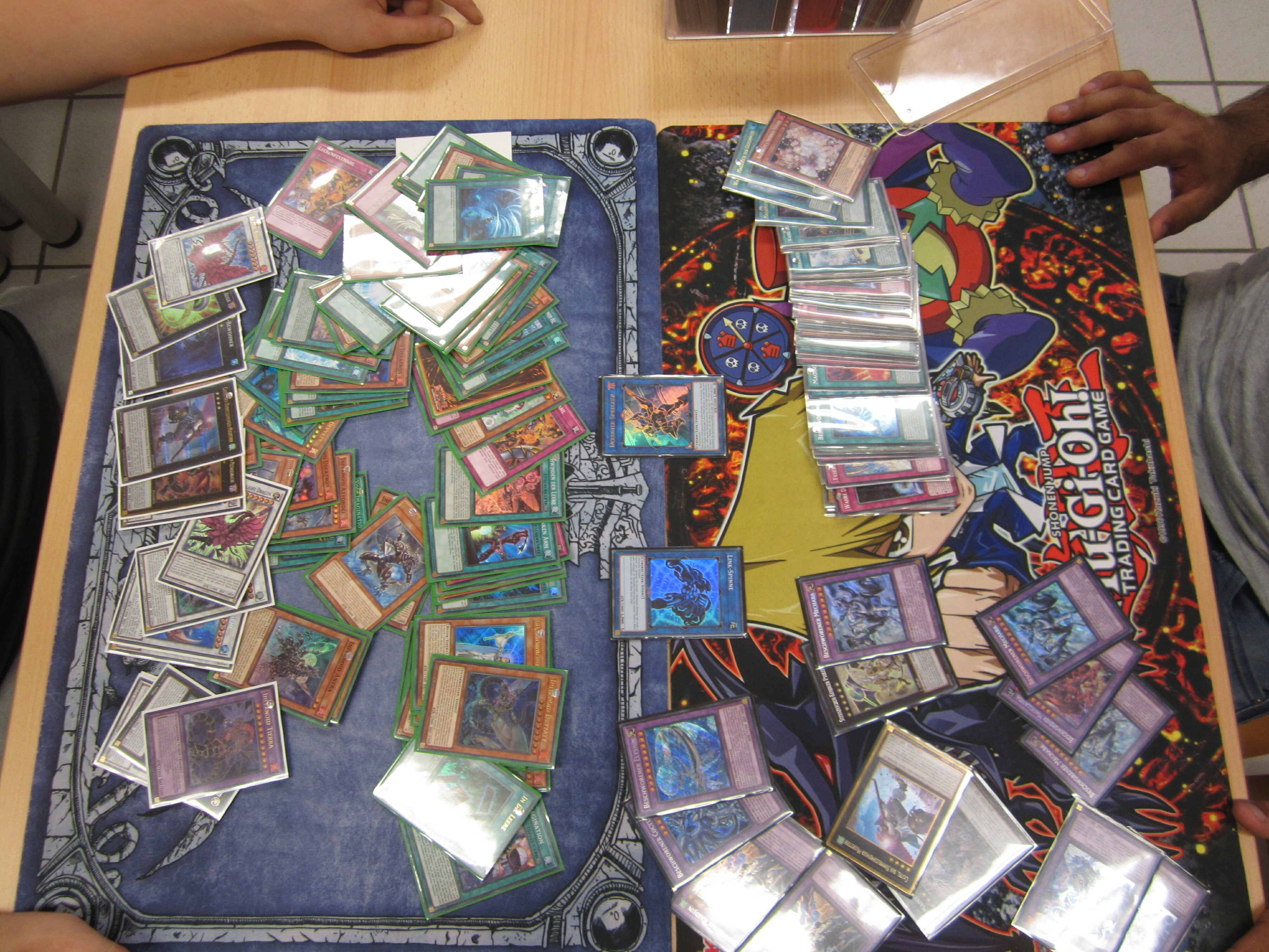 Im Kartenspiel mit den gezeichneten Comic-Figuren namens „Yu-Gi-Oh!“ geht es darum, mit einem sogenannten Deck an Karten (Bild: z) die Lebenspunkte des Gegners auf Null zu bringen. In einem Duell können unterschiedliche Karten wie Monster, Fallen oder Zauber ausgespielt werden, mit denen man den Gegner in die Knie zwingt. Ein Deck besteht aus mindestens 40 selbst gesammelten und ausgewählten Spielkarten, was mit der Individualität jedes Duells zu einem spannenden Spiel führt.