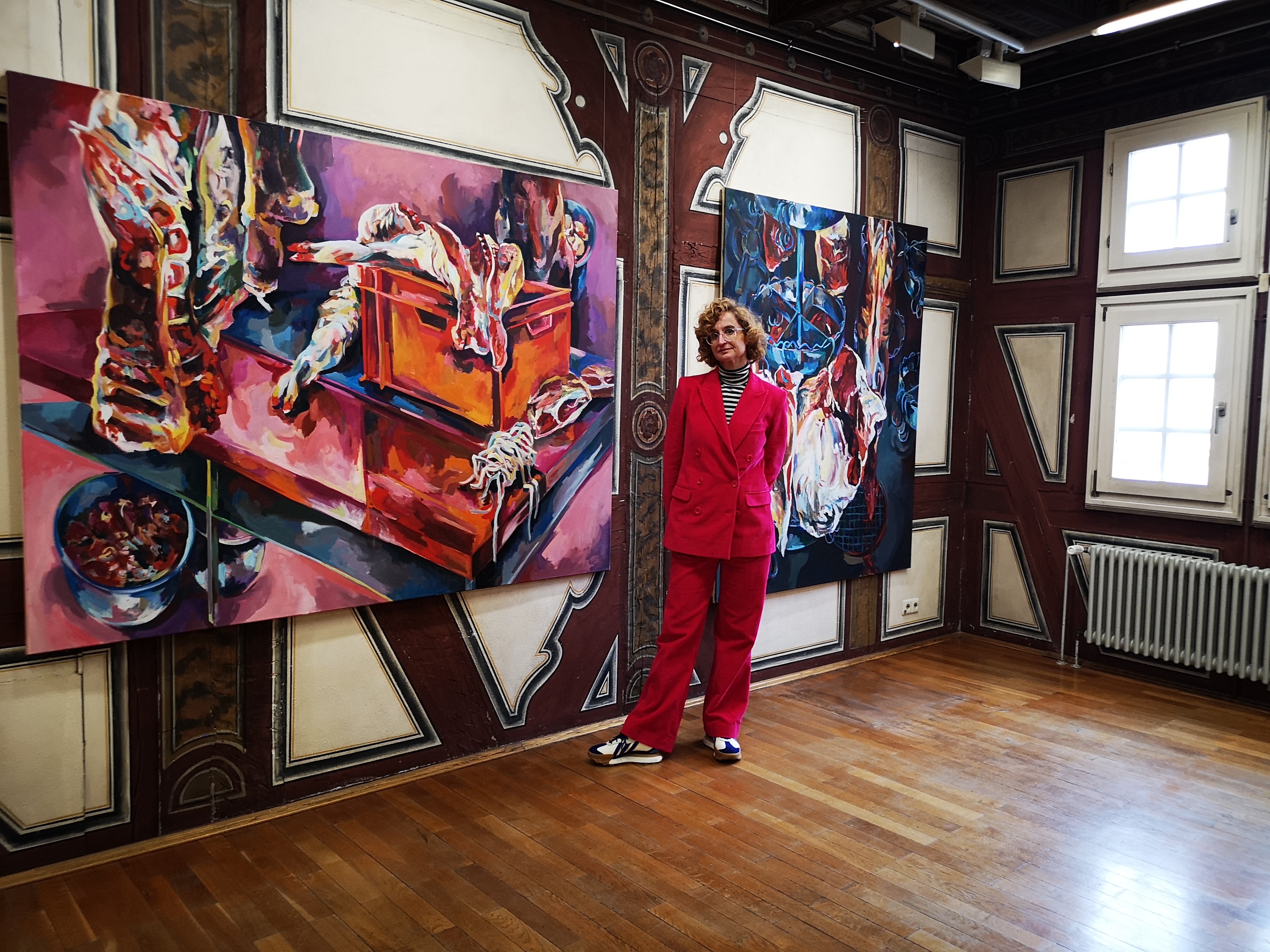 Böblingen. Das Deutsche Fleischermuseum hatet zum „Malerinnenfest vom Allerfeinsten im schrägsten Haus der Stadt“ geladen. Bei der Midissage der Schau „Mattatoio di Roma“, die bis Mai läuft, war die gebürtige Pforzheimerin Dorothea Schüle anwesend.