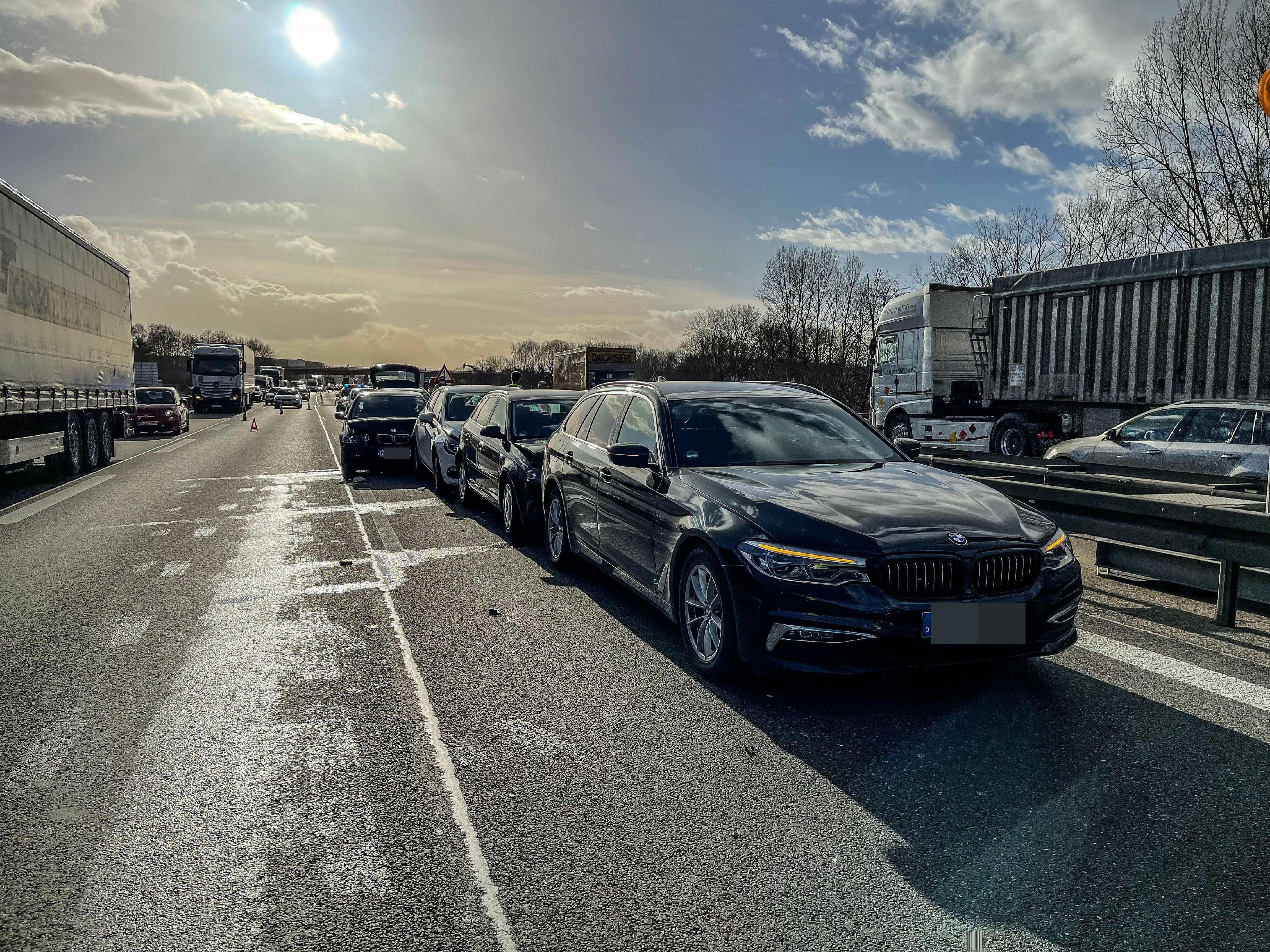 Böblingen/Sindelfingen. Vermutlich aufgrund eines Rückstaus kam es am Donnerstagnachmittag zu einem Verkehrsunfall auf der A 81 in Höhe Böblingen/Sindelfingen. Wie die Polizei mitteilt, befuhren die Fahrzeuge die A 81 in Richtung Stuttgart. Aufgrund eines Rückstaus kam der Verkehr zum Erliegen. Ein BMW-Fahrer bremste daraufhin ab. Vier hinter ihm fahrende Autos fuhren auf den BMW auf und wurden teilweise stark beschädigt. Zwei Personen wurden bei dem Unfall leicht verletzt. Drei Fahrzeuge waren nicht mehr fahrbereit und mussten abgeschleppt werden. Hinter dem Unfall bildete sich Rückstau über mehrere Kilometer.