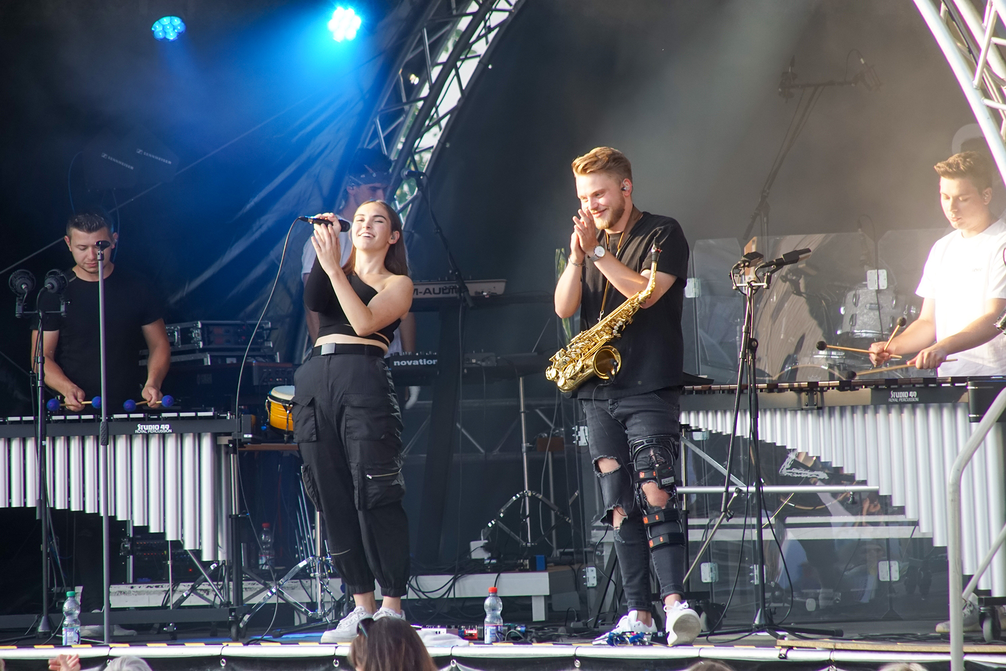 Als Sängerin Jule Borchhardt gegen 21.30 Uhr mit Ankündigung des letzten Songs das Ende des Konzerts von „Skin of Clazz“ im Rahmen der städtische ...