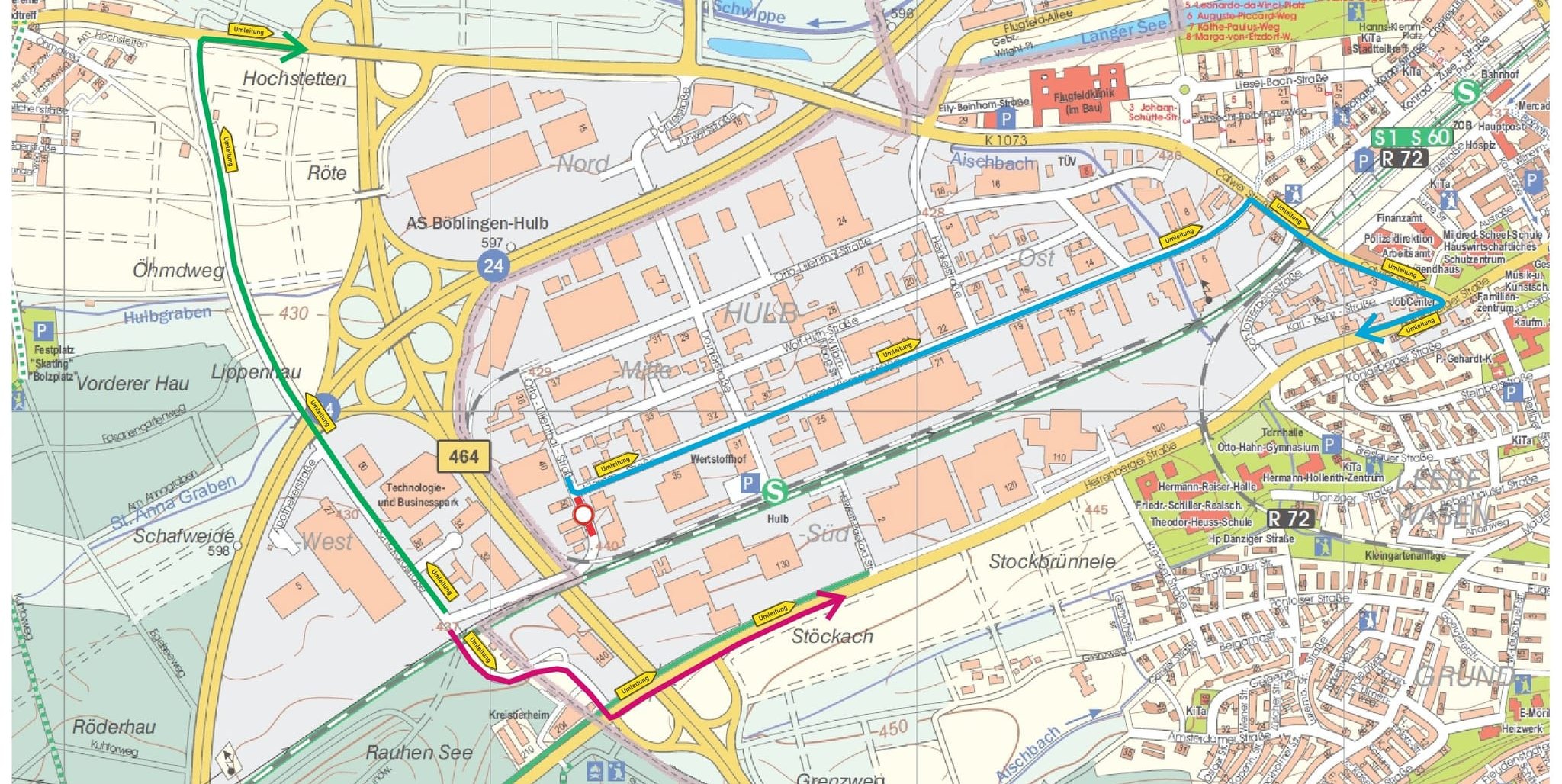 Die Stadtverwaltung weist in diesem Zusammenhang nochmals auf die ausgeschilderten Umleitungen hin. Von der Hulb kommend: Hanns-Klemm-Straße – Calwer Straße – Herrenberger Straße – Schickardstraße Von der Schickardstraße kommend: Schickardstraße – K1073 – Calwer Straße oder Schickardstraße – Herrenberger Straße – Calwer Straße zur Hulb.