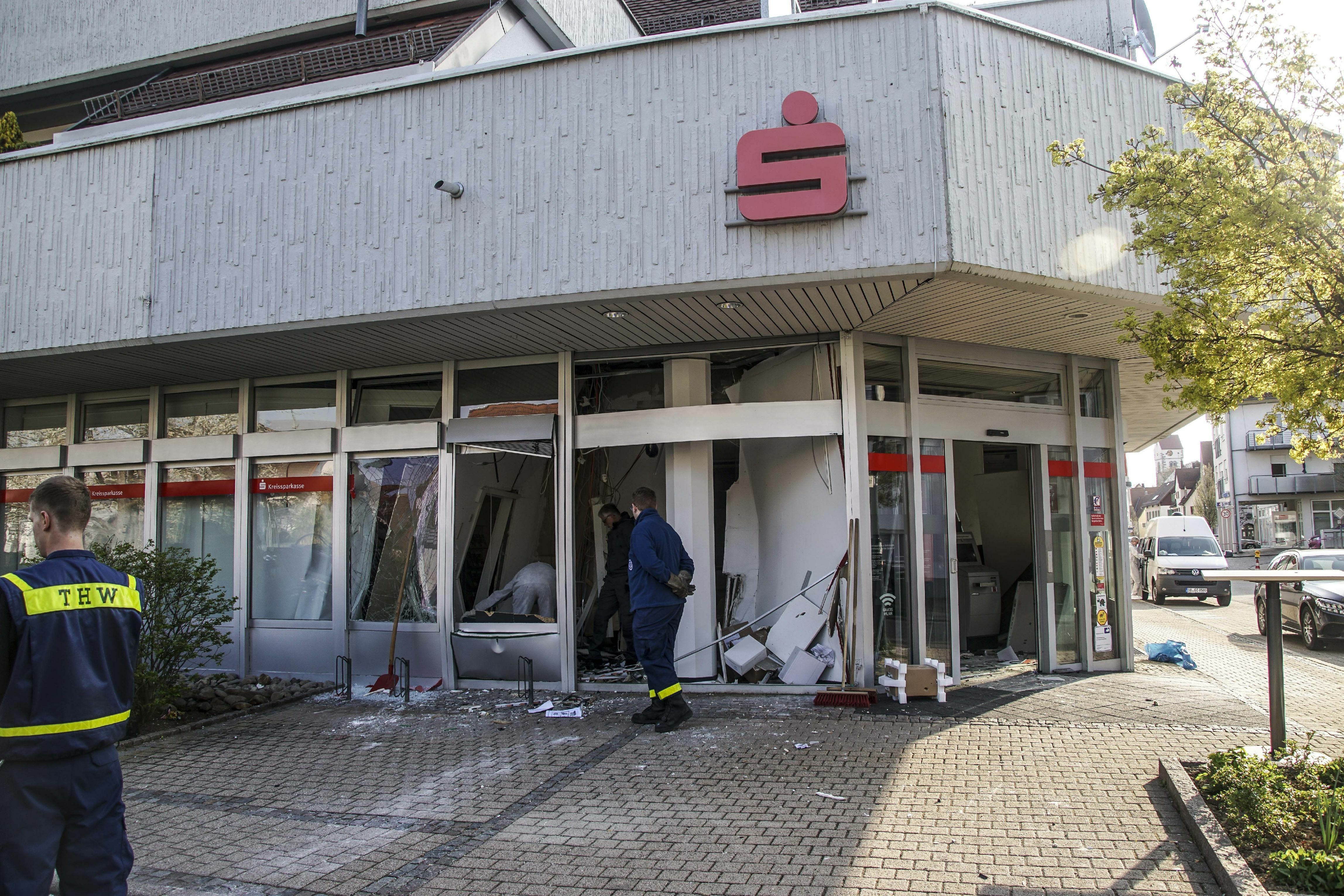 Bondorf . Am frühen Donnerstagmorgen riss eine Explosion die Anwohner der Hindenburgstraße in Bondorf aus dem Schlaf. Unbekannte Täter hatten gegen 3.15 Uhr den Geldautomaten, der sich im Vorraum der Kreissparkasse befand, gesprengt. Die Täter flüchteten anschließend mit einem Auto.