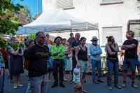 Von den acht Ausstellern ist mittlerweile, neben dem Organisator Gerhard Hemberle, nur noch Monika Kuch aus Esslingen mit dabei. Schräg gegenüber der Zehntscheuer präsentiert ...