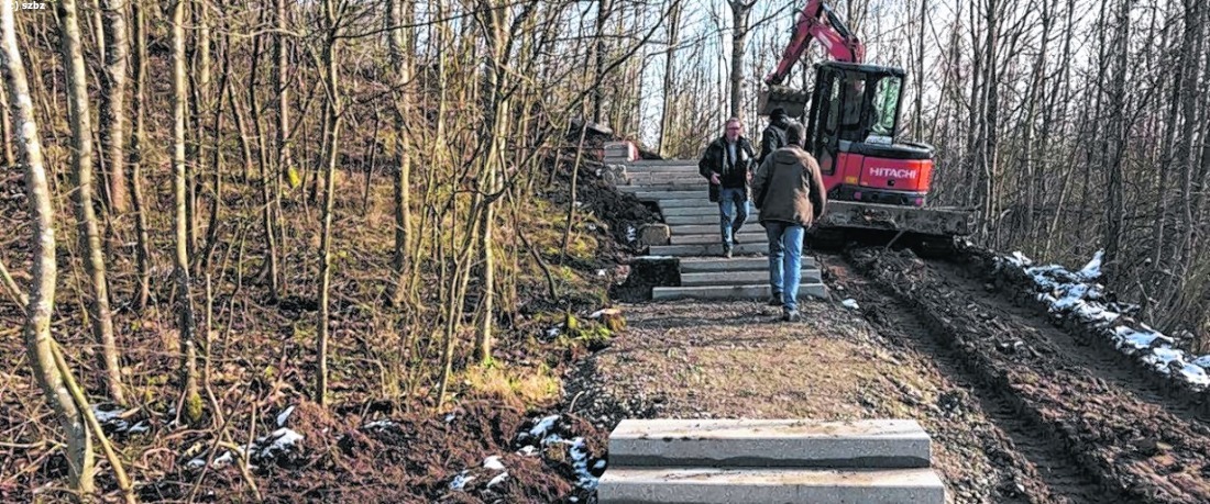 Die Planung stammt von Landschaftsarchitekt Prof. Jörg Stötzer. Zunächst geht es auf einem bestehenden Weg am östlichen Ende des Parkplatzes in den Wald hinein. Nach rund 100 Metern zweigt der Weg nach rechts ab und führt über eine Wiese bergan. Im letzten Stück wird eine Treppenanlage eingebaut. „Über diesen Weg ist man in rund fünf Minuten vom Parkplatz am Turm“, sagt der stellvertretende Landrat, Martin Wuttke. „Es ist eine ganz tolle Aktion, dass die Auszubildenden sich hier einbringen. Mit ...