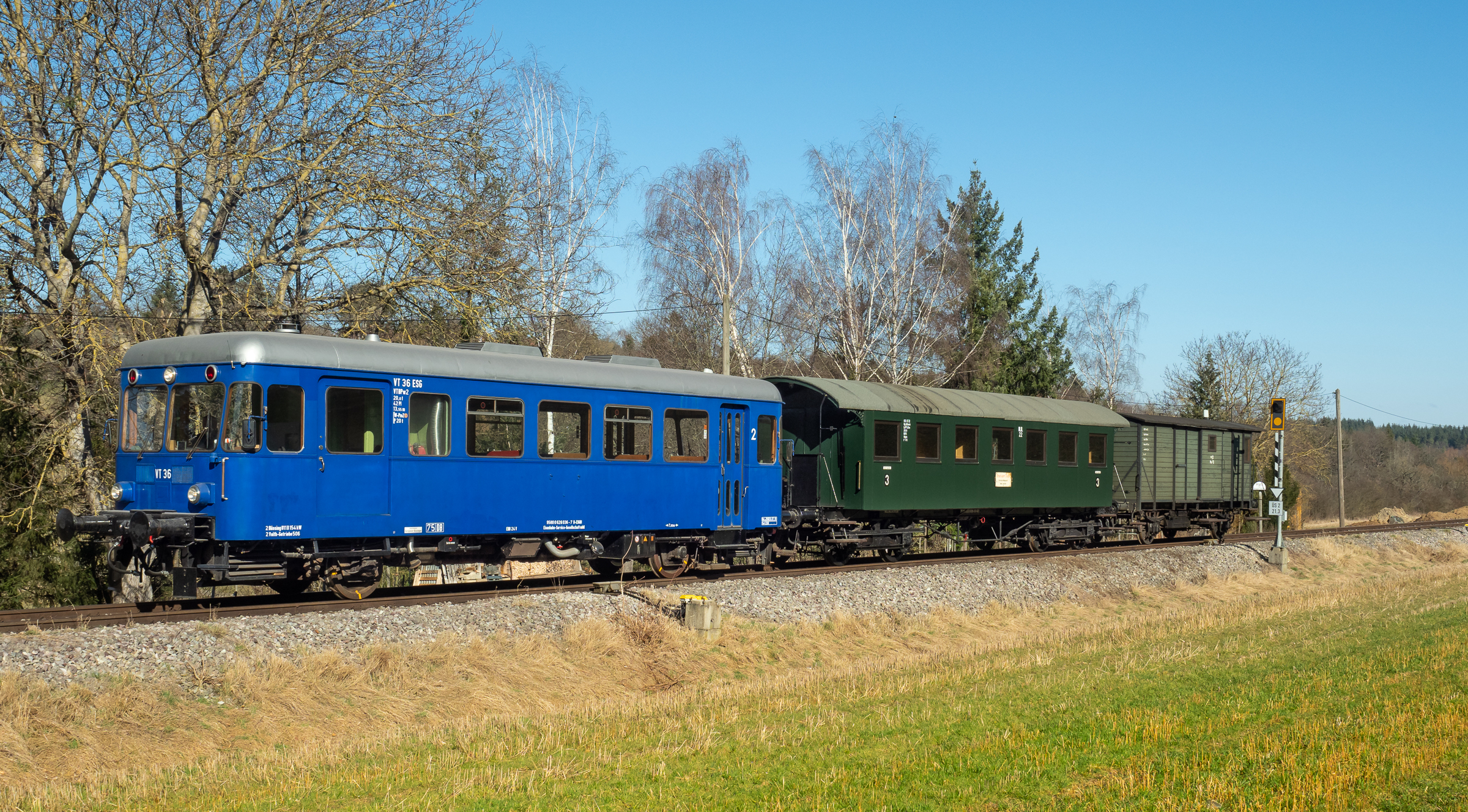 Kreis Böblingen. Es handelt sich hierbei um einen historischen Triebwagen aus den 1950er Jahren, an den auch 1-2 historische Plattformwagen angehängt werden – genau so, wie in den 1950er/60er Jahren der Verkehr auf der Strohgäubahn aussah.
