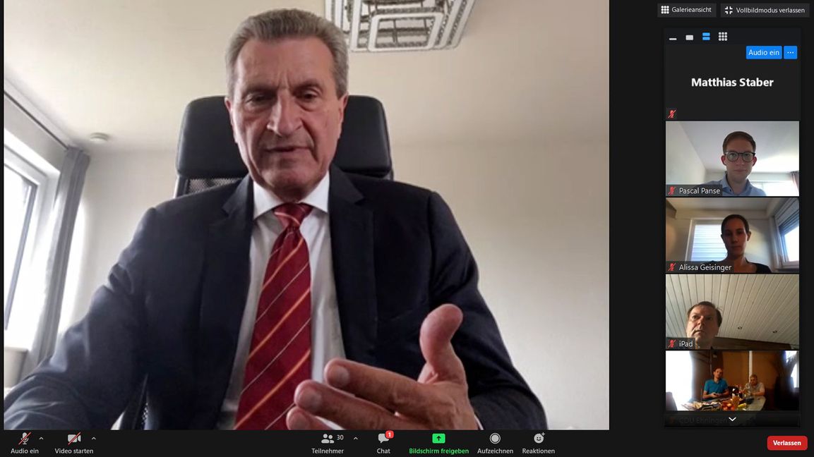 Böblingen: Günther Oettinger spricht per Internet beim CDU-Stadtverband über „Wege aus der Krise“