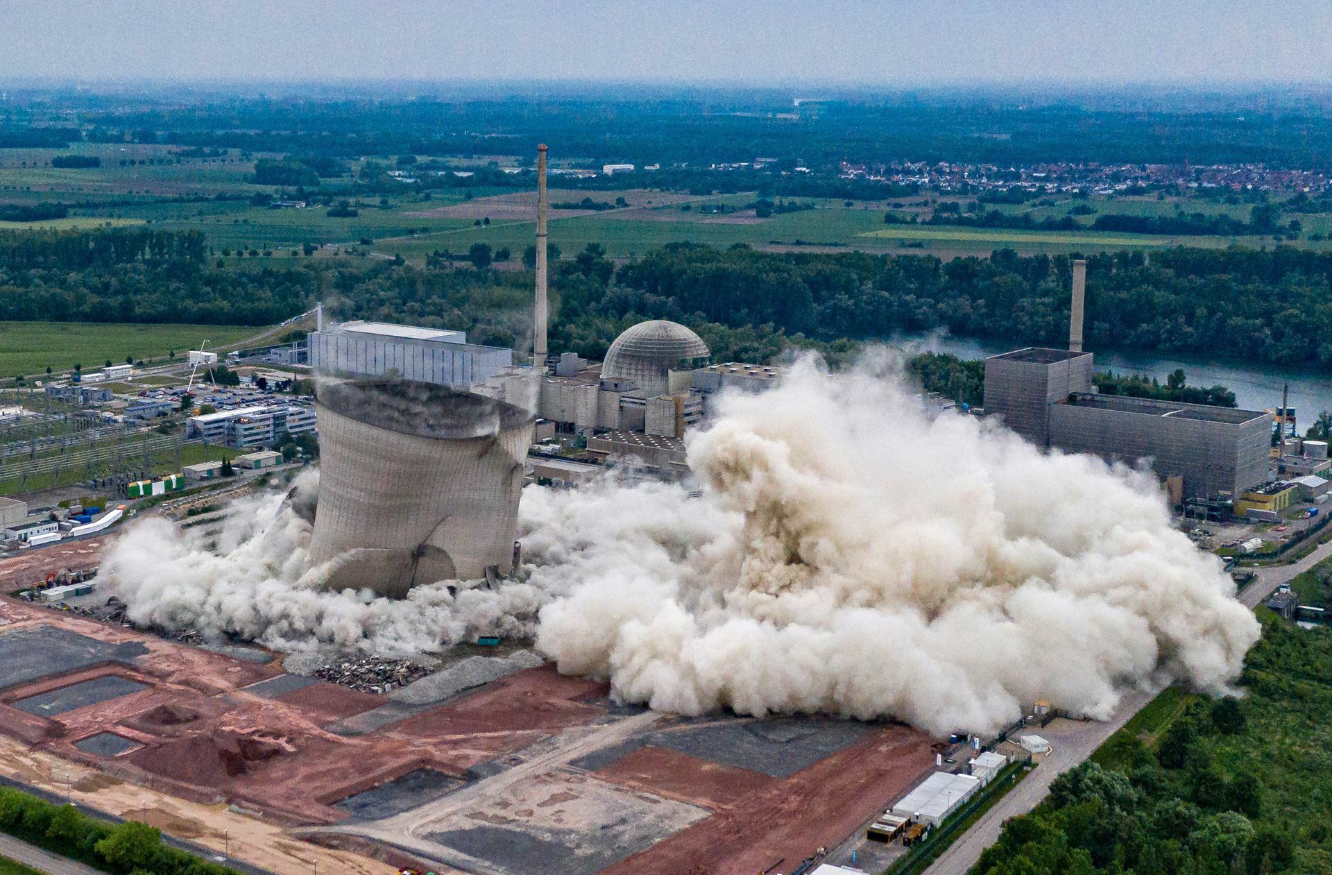 Die Sprengung dieses Kühlturms des Atomkraftwerks Philippsburg ist Teil des 2011 beschlossenen Atomausstiegs.