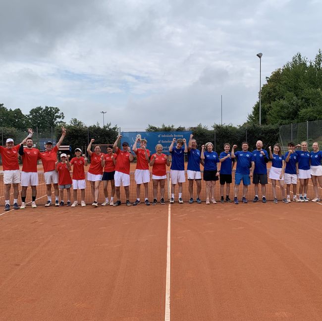 Bereits vor den Sommerferien kam es zur Erstauflage des neu geborenen Ehninger LaverCup's - dem neuen Modus der Clubmeisterschaften unseres Tennisvereins. Die Turnierorganisatoren Thomas und Björn hatten aus den 20 Anmeldungen 2 gleichstarke Gruppen gebildet und sehr spannende und ausgeglichenen Paarungen zusammengestellt. Drei Runden traten die Mannschaften Rot und Blau - mit entsprechend ausgestatteten Shirts gekleidet - in den diversen Disziplinen Doppel, Mixed und Einzel gegeneinander an. Nach der ersten Runde stand es unentschieden 3:3. Doch in Runde 2 und 3 konnten sich die Roten jeweils mit 4:2 Punkten durchsetzen, so dass die Premieren-Sieger die rote Gruppe waren und freudig den Ehninger Wanderpokal in Empfang nehmen durften. HERZLICHEN GLÜCKWUNSCH!!