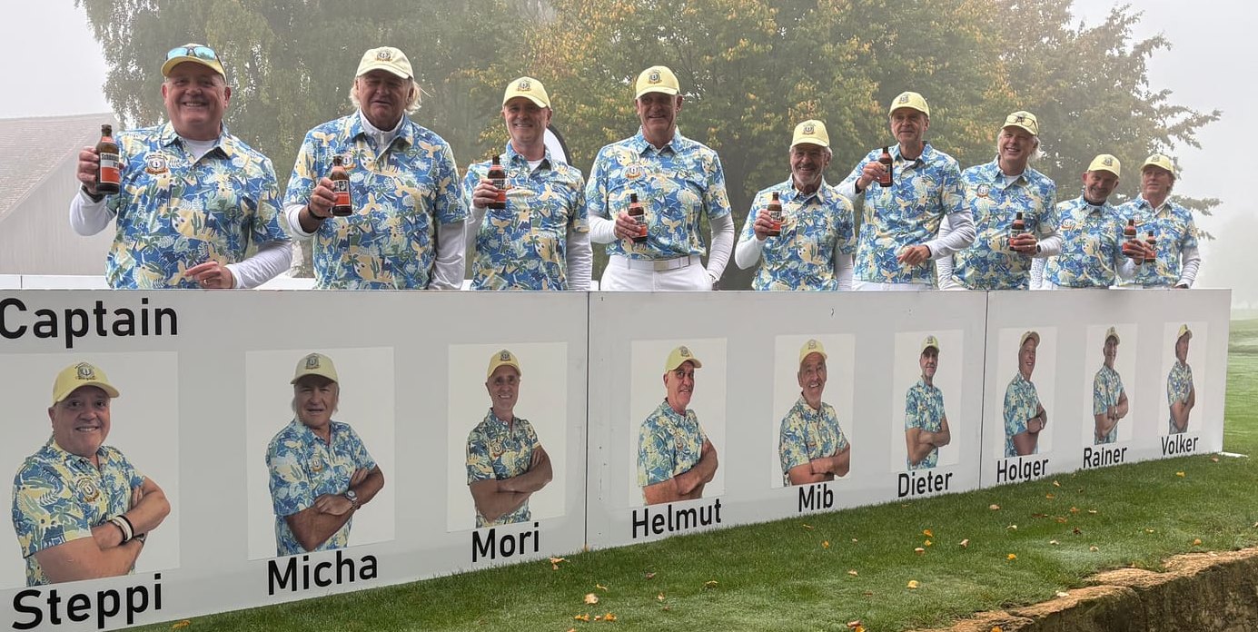 Golf. Was ist das denn? Die Böblinger trauen ihren Augen kaum, als sie den Golfclub Schönbuch betreten. Die Konkurrenz aus Sindelfingen hat sich offensichtlich akribisch auf die zwölfte Auflage des Ryder Cups im Miniformat vorbereitet. Das Team formiert sich nicht irgendwie beliebig für das Mannschaftsfoto, sondern stellt sich fein in Reih‘ und Glied hinter eine Bande, die Michael Bernard in München auf den Anhänger stellte. Dessen Neffe ist Experte in Sachen Events und hat immer eine gute Idee ...