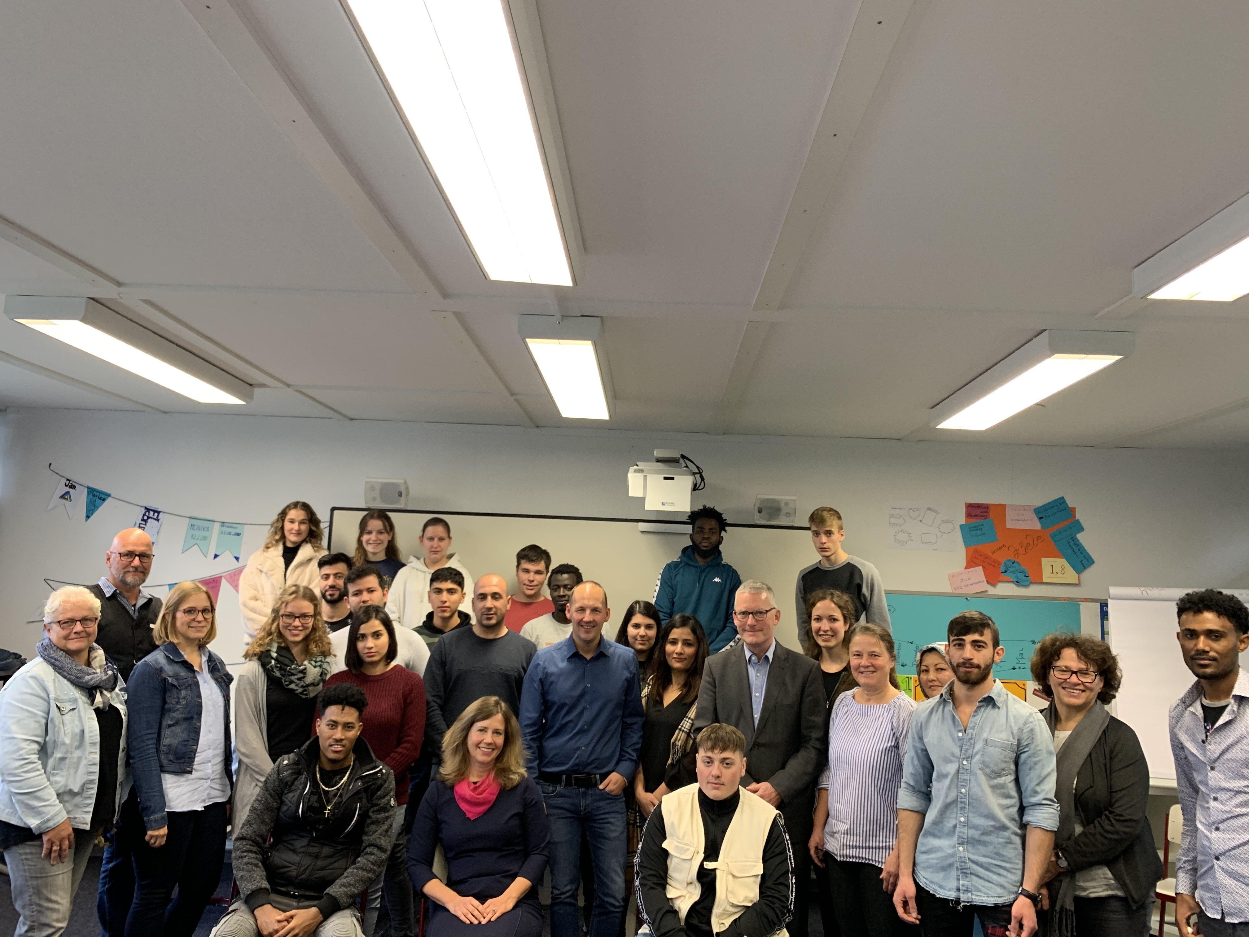 Herzlich empfangen wurde der Bundestagsageordnete in der HASA in Sindelfingen, der bundesweit einzigen Schule unter Regie eines Jugendamtes. Tina Schäfer-Brennenstuhl, Leiterin der HASA, und Wolfgang Trede, Leiter des Jugendamtes des Landkreises Böblingen, begrüßten Marc Biadacz und führten durch die Räumlichkeiten. Was die Schülerinnen und Schüler mit dem Bundestagsabgeordneten geplant hatten, zeigte ein Tafelbild im Klassenzimmer.