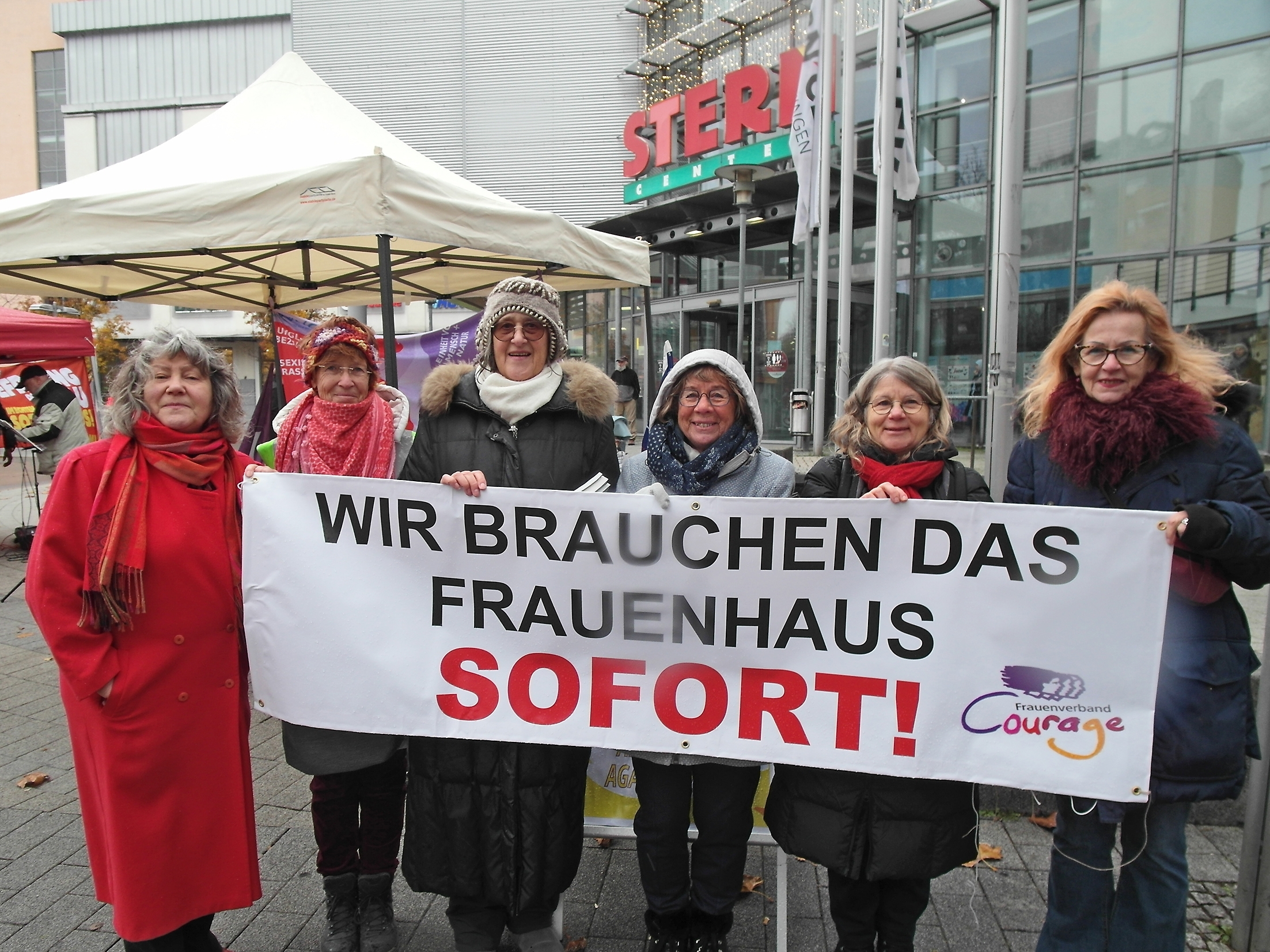 Sindelfingen.„Wir brauchen das Frauenhaus sofort!“: Bei einer Kundgebung vor dem Sindelfinger Stern-Center zum Internationalen Tag gegen Gewalt an Frauen hat der Frauenverband Courage gemeinsam mit Aktivistinnen weiterer Organisationen ein Frauenhaus im Landkreis Böblingen gefordert. Es sei nicht hinnehmbar, dass die Umsetzung eines Frauenhaus-Konzepts wegen der Finanzierung scheitere, so Eva Höfler-Haidle, die gemeinsam mit Doris Bleeser der Ortsgruppe Böblingen/Sindelfingen des Frauenverbands ...
