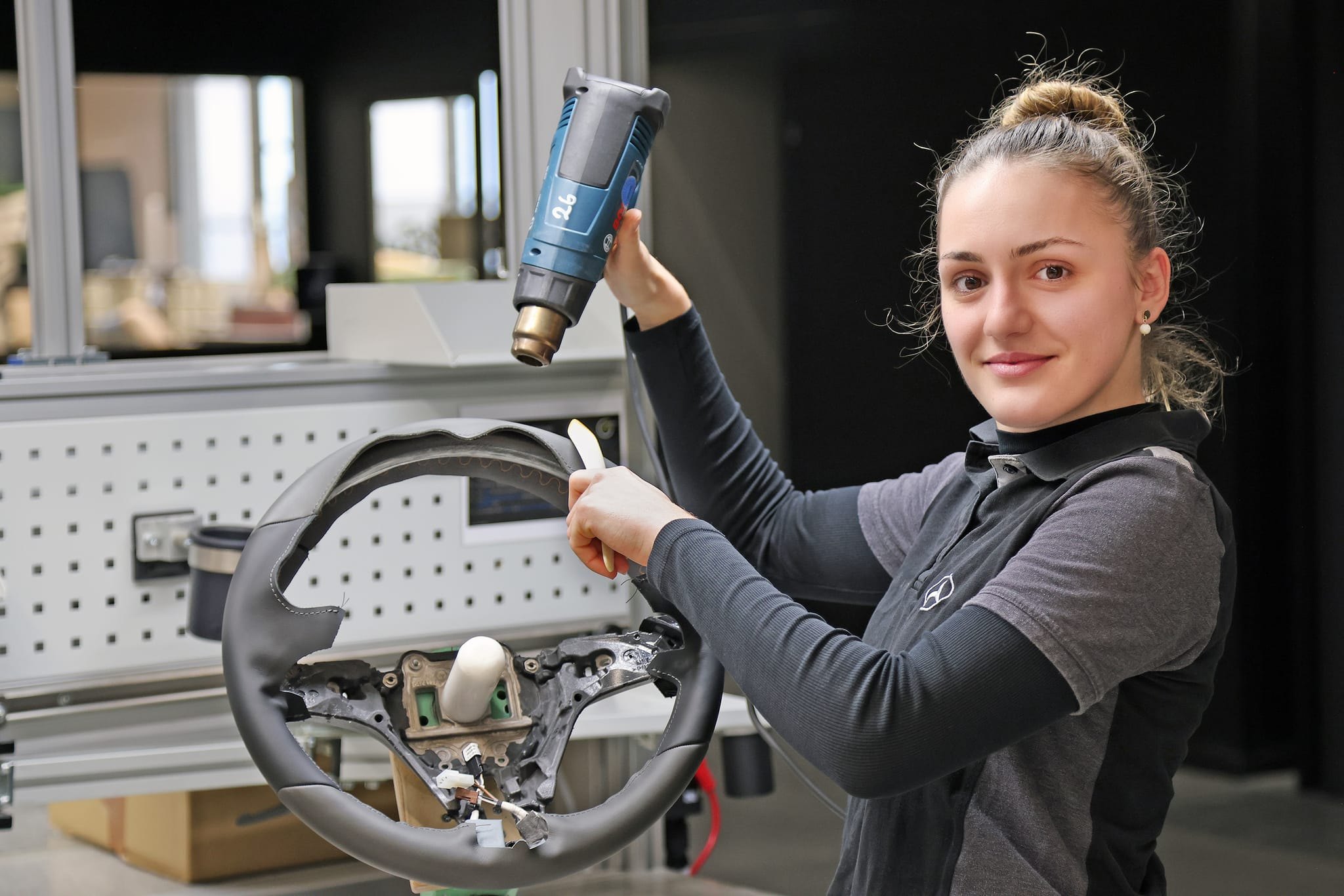 Während der Ausbildung war eine Zwischenstation die Manufaktur, das markenübergreifende Individualisierungs-Angebot für exklusive Exterieurausstattungen und hochwertige Interieurausstattungen von Mercedes-Benz. Dort ist die 22-Jährige nun angestellt und sehr glücklich darüber: „Ich bin in der Lenkrad-Manufaktur tätig. Die Liebe zum Detail bereitet mir große Freude. Es ist eine tolle Bestätigung, wenn man abends sieht, was man den Tag über geschafft hat“, sagt Tijana Suzanovic und ergänzt: „Die Mischung aus handwerklichem Geschick und Kreativität, da kein Lenkrad wie das andere ist, begeistert mich. Ein Job als Sachbearbeiterin wäre nichts für mich.“