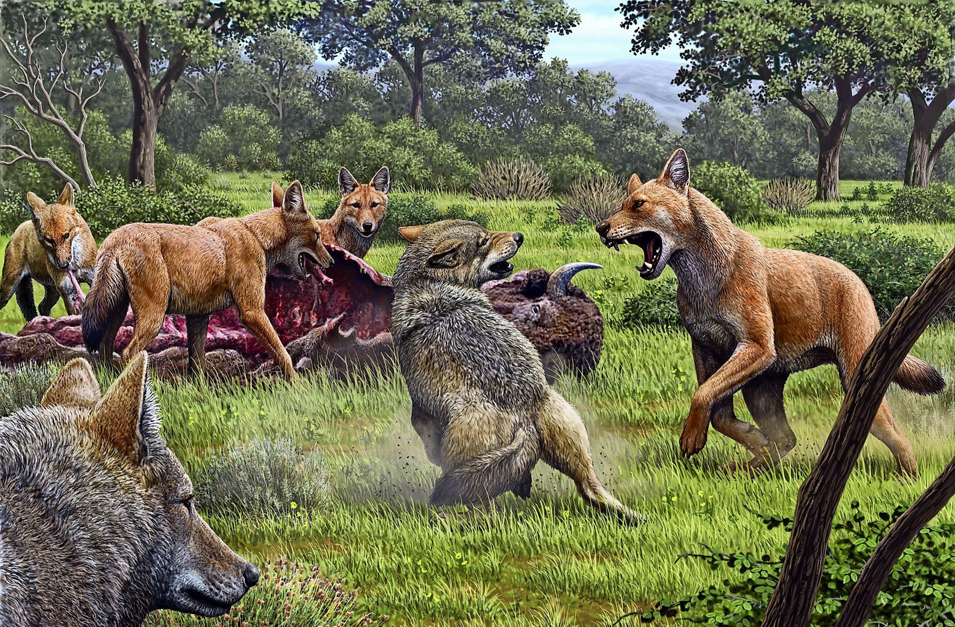 Die roten Schattenwölfe (heute ausgestorben) kämpften vor mehr als 13 .000 Jahren mit den grauen Wölfen. Vermischt haben sie sich nicht. Foto: Mauricio Anton