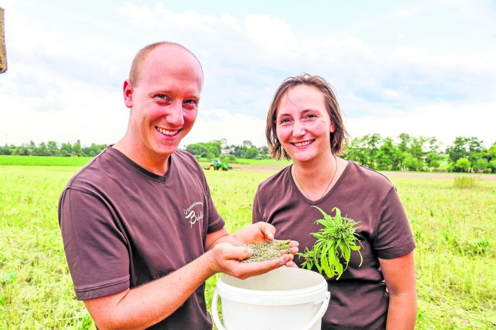 **Solche Pflanzen hat in der Region noch niemand auf einem Acker wachsen sehen – zumindest nicht legal. Die Bondorfer Stefan Lehre und seine Schwester Nadine Striebich haben ihre erste eigene Nutzhanf-Ernte ...