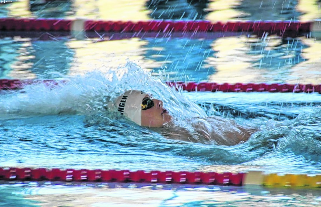 Bei den süddeutschen Meisterschaften der langen Strecke in Neckarsulm gelang Marc Nüter vom VfL Sindelfingen ein Doppelschlag. Er vergoldete seine Starts und wurde Jahrgangsmeister 2003 über 400 Meter Lagen in 4:44,53 Minuten und 1500 Meter Freistil in 16:57,80 Minuten. Über beide Strecken platzierte er sich darüber hinaus in der offenen Wertung in den Top 10 platzieren. Bei diesen Meisterschaften ging es ausschließlich über die 400 Meter Lagen, 800 Meter Freistil und 1500 Meter Freistil. 64 Vereine aus dem Süden Deutschlands reisten ins Aquatoll-Sportbad an. Als jüngste Starterin des VfL Sindelfingen stieg Bibiana Uhl (Jahrgang 2005) auf die Blöcke. Auch sie ging zweimal an den Start und beeindruckte mit ihren Rennen. Sie schlug über 400 Meter Lagen in 5:23,84 und 800 Meter Freistil in 9:43,08 als Dritte in ihrem Jahrgang an. Das VfL Team komplettierten Mette Biehal, Paula Ernst, Carolin Bek, Noam Chrobok und Marek Jahn. Sie alle zeigten sich in guter Form und überzeugten mit persönlichen Bestzeiten. Für die Sportler waren diese Meisterschaften eine gute Gelegenheit sich für die deutschen Jahrgangsmeisterschaften bereits jetzt zu qualifizieren. – aj–/Bild: Jahn/z