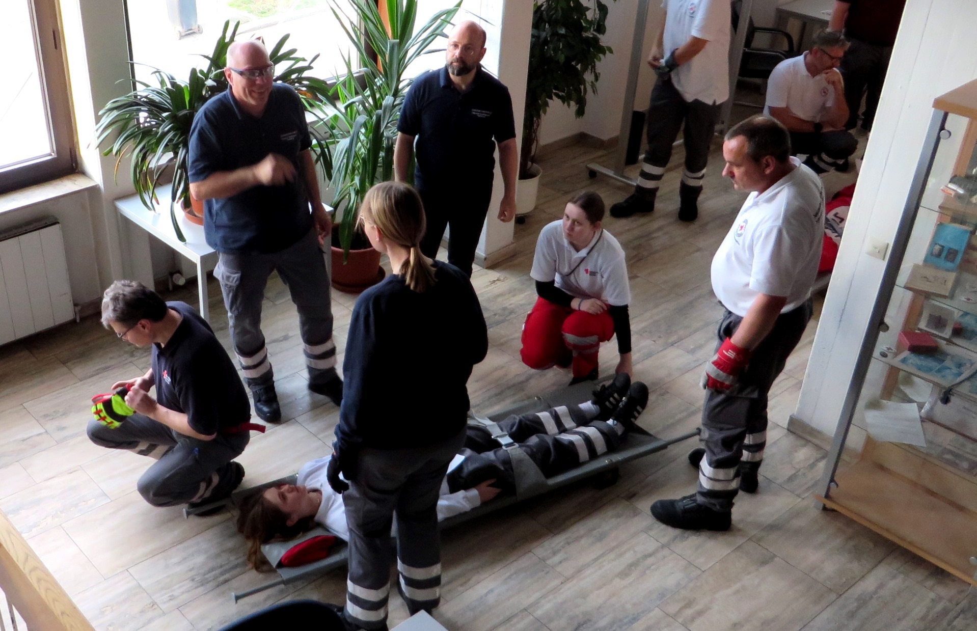 Auf dem Unterrichtsprogramm stand unter anderem das Bergen und der Transport von Verletzten aus der Gefahrenzone mit Tragen und ähnlichen Transportgeräten, Maßnahmen bei thermischen Notfällen, bei Sportverletzungen, bei Herz-Kreislauf-Problemen bis hin zu Herzinfarkten und Schlaganfällen, Maßnahmen der Wundversorgung, Infektionsschutz, Hygienemaßnahmen sowie Grundlagen einer psychologisch angemessenen Betreuung von Patienten. Schließlich müssen die Helferinnen und Helfer zahlreiche rechtliche Vorgaben bei ihrer ehrenamtlichen Tätigkeit beachten, die ihnen in der Ausbildung ebenfalls vermittelt wurden – in insgesamt 64 Unterrichtsstunden mit schriftlicher und praktischer Prüfung. Von Seiten des DRK-Ortsvereins Sindelfingen waren an der Sanitätsgrundausbildung 6 pädagogisch geschulte Sanitätsausbilder, 2 Rettungssanitäter, 5 Sanitätshelfer sowie 3 Einsatzköche beteiligt.