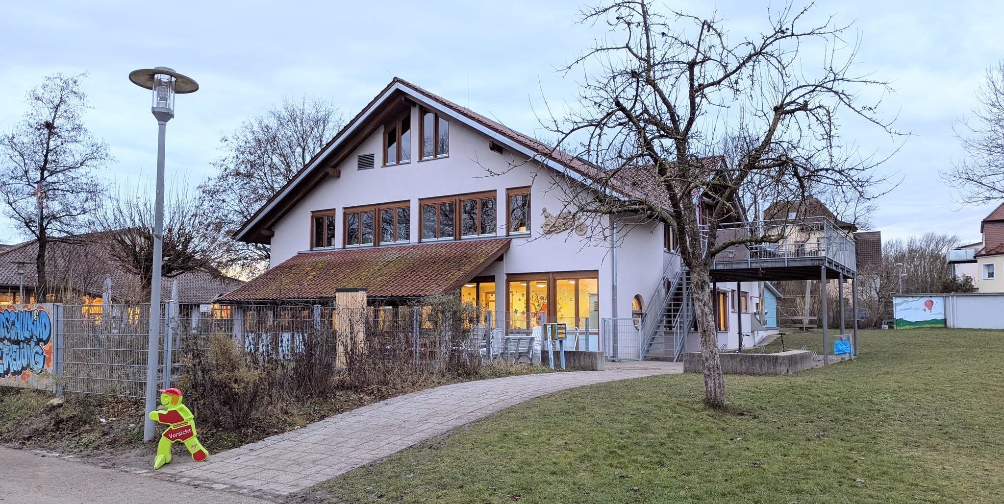 Im Haus der Jugend ist aktuell die Grundschulkindbetreuung untergebracht. Für die ERfüllung des Rechtsanspruchs der Betreuung im Grundschulbereich, ist ein möglicher Anbau im Gespräch. Bild: Nüßle