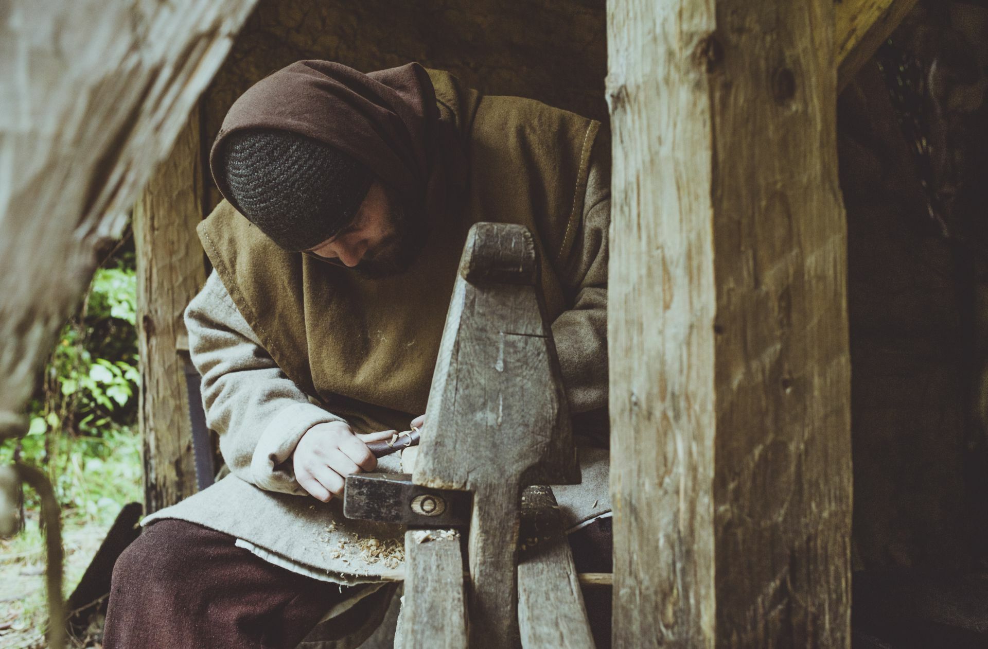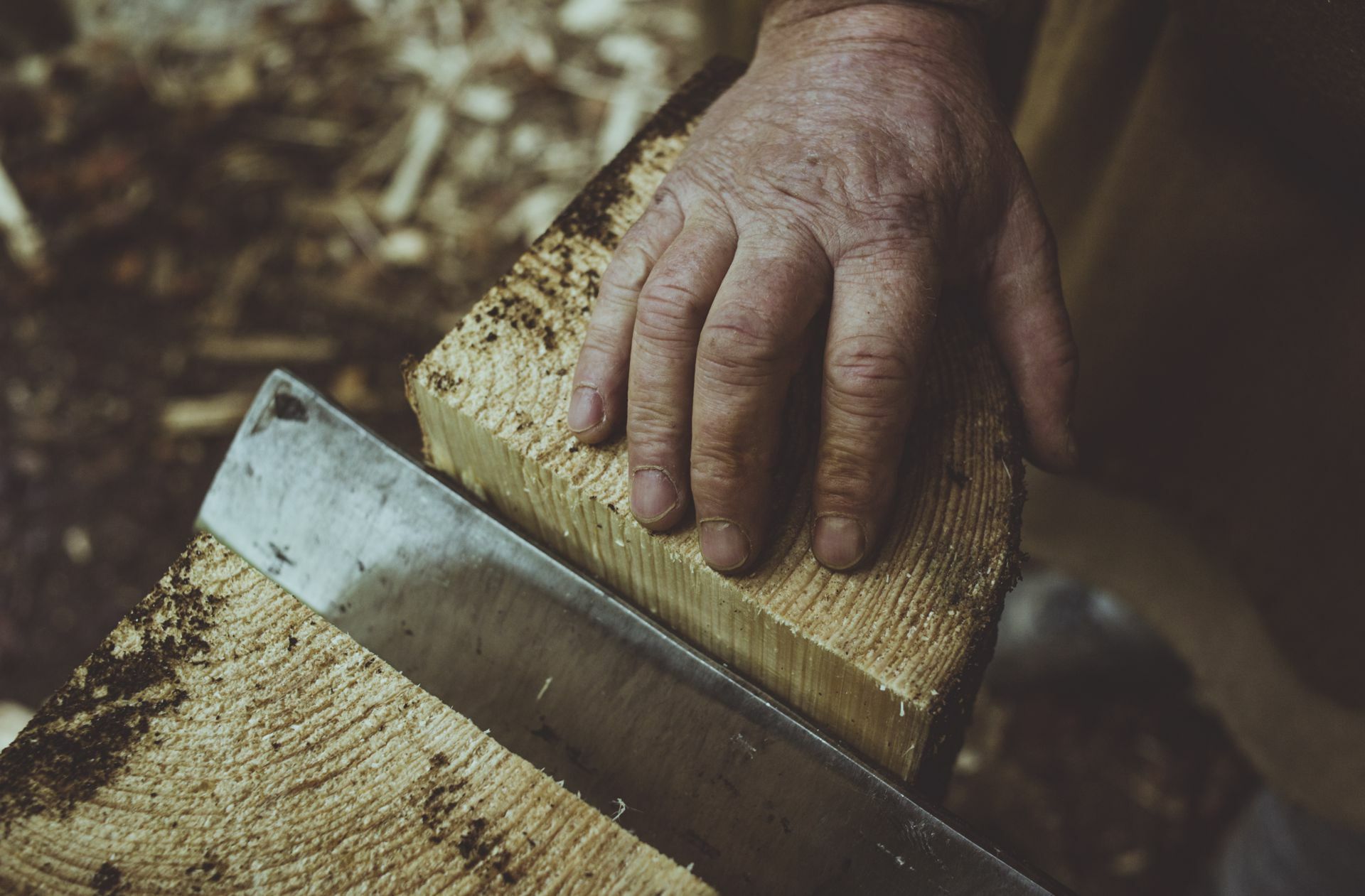 Jürgen Mädler war Lkw-Fahrer, dann verlor er sich. Heute arbeitet er als Schindelmacher im neunten Jahrhundert.