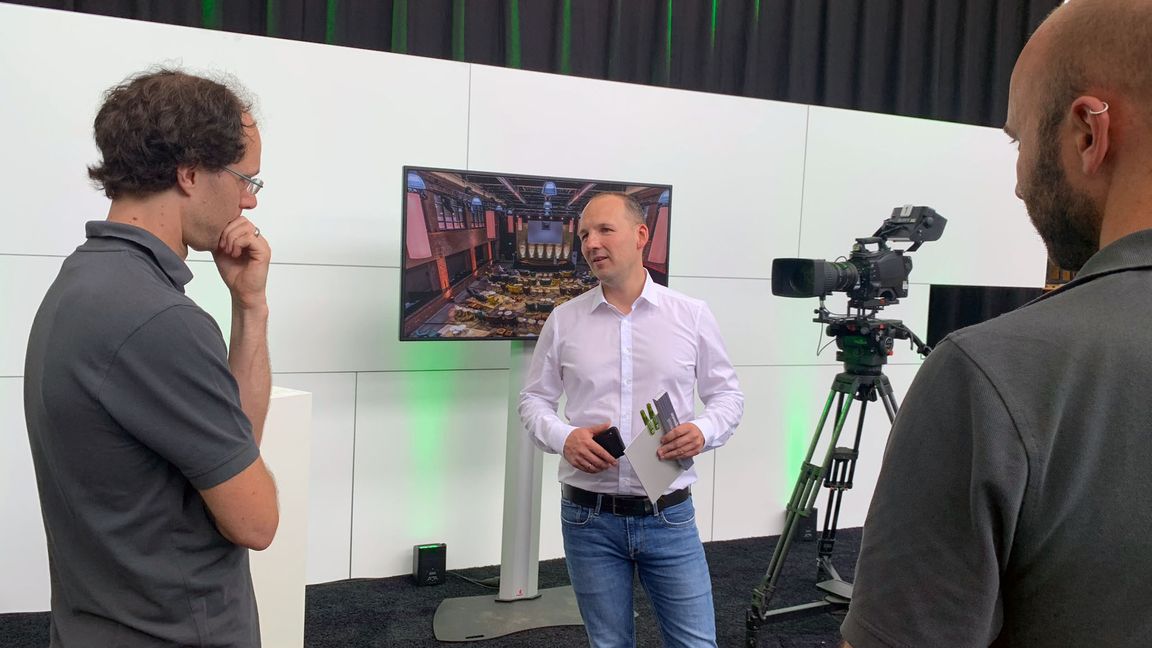 Das Streaming-Set ist aufgebaut, die Kamera steht bereit, Scheinwerfer erhellen die Szene. „Gehen wir gleich auf Sendung?“, scherzt Marc Biadacz. Uli Breitmaier und Christoph Meier begrüßen den Bundestagsabgeordneten in ihrem Unternehmen, der Neunzehnzoll Eventservice GmbH in Aidlingen. Mit Blick auf die Auswirkungen der Coronakrise tauscht sich der Abgeordnete mit verschiedenen Branchen aus, möchte Einblicke gewinnen und erfahren, wie es den Unternehmen im Kreis geht.