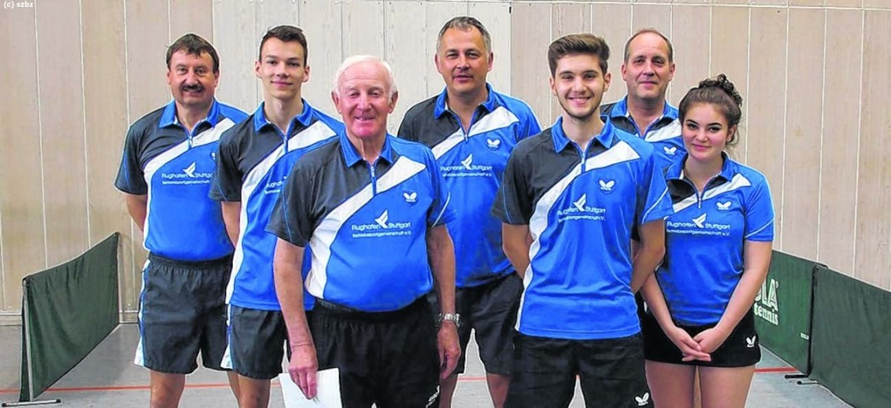 Tischtennis: Das Team des Stuttgarter Flughafens mit TTV- und VfL-Spielern schafft es aufs Podium