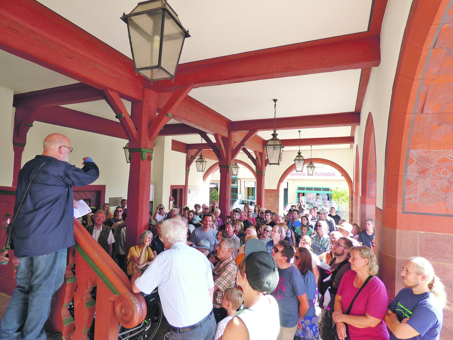 In der Kernstadt bildeten das alte Spital und das Stadtarchiv eine Brücke in alte Zeiten. Manfred Bürklen und Raimund Kolb führten in mehreren Führungen ca. 250 Besucher durch die alten Gemäuer und gaben einmalige Einblicke aus dem Alltag und dem Leben im Spittl. Auch das alte Spitallager Buch, welches im Stadtarchiv bei Lothar Sigloch auslag, lockte viele Besucher an.