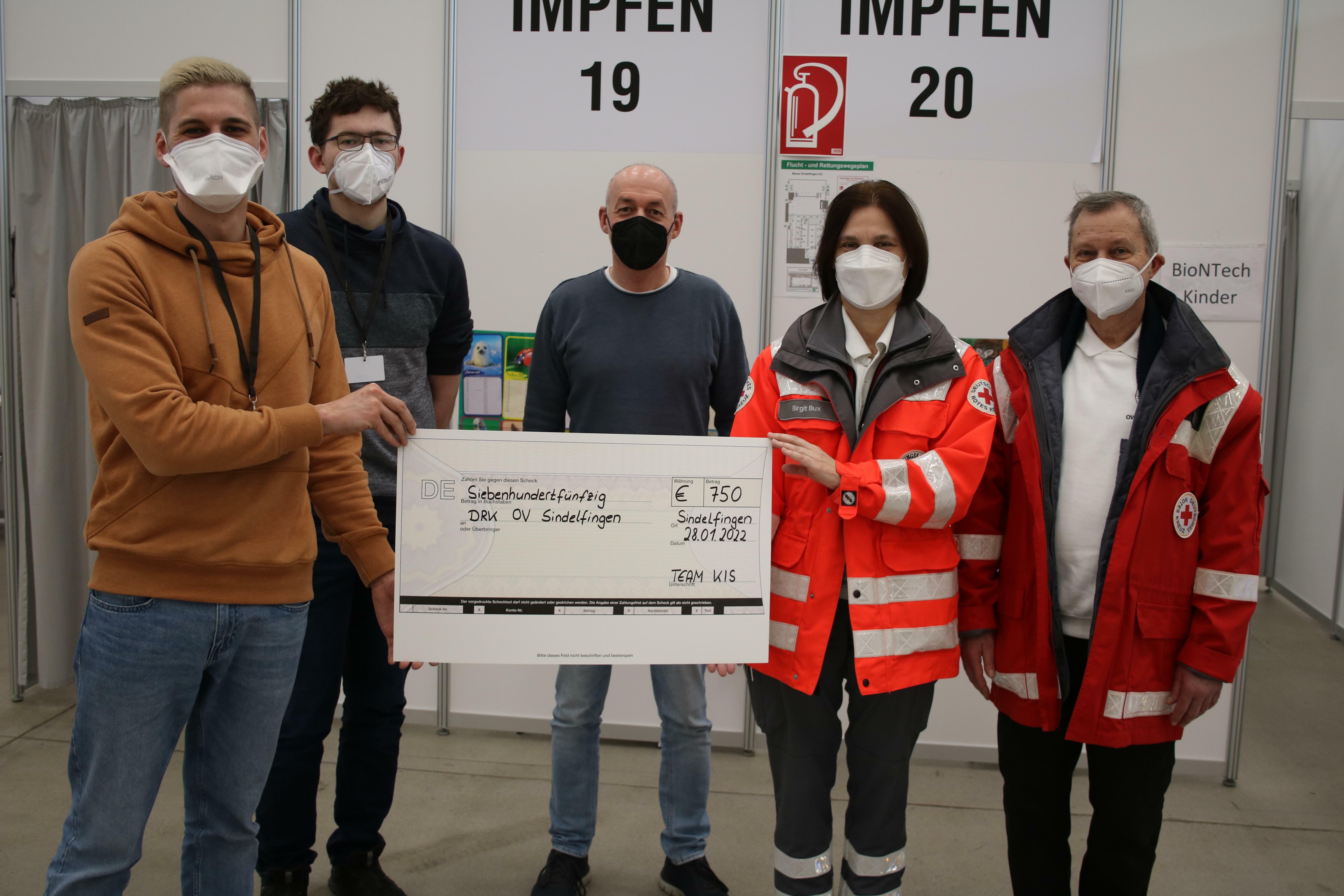 Im Auftrag der fünf Betreiber-Apotheken übergab das Leitungsteam als Zeichen des Dankes und der Anerkennung jetzt Birgit Bux und Roland Krug vom DRK-Ortsverein Sindelfingen eine "kleine finanzielle Auffrischspritze" in Höhe von 750 Euro. Ab sofort bietet der Kreisimpfstützpunkt Sindelfingen auch kostenlose PCR-Testungen an. Allerdings müssen die Berechtigungen hierfür auf der Grundlage der Corona-Verordnung des Landes vorliegen. Alles Nähere auf der Homepage des Landratsamtes Böblingen (lrabb.de), Buchungsportal. Nach den Worten von Thomas Feuchter können nach den entsprechenden Anmeldungen 300 Abstriche in der Stunde vorgenommen werden.