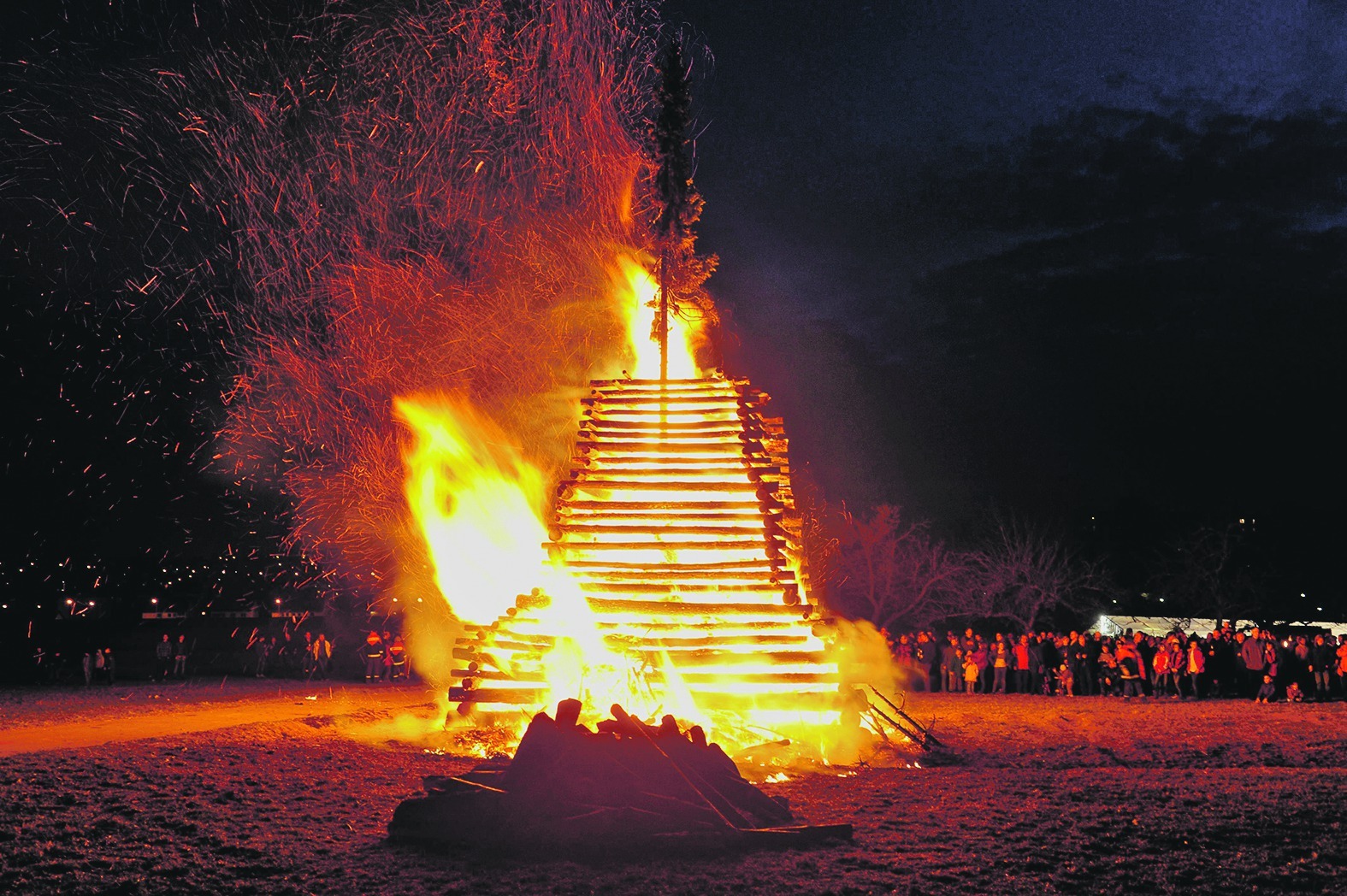 Meterhohe Flammen flackern am Samstag, 9. März, in den nächtlichen Himmel von Magstadt. Zum 11. Mal bereits brennen nach dem Aschermittwoch in Magstadt die Funken. Der Brauch geht vermutlich auf die vorchristliche Zeit zurück, als man mittels Feuer zur Wintersonnenwende die bösen Geister und den kalten Winter vertreiben wollte. Am Funkenplatz hinter den Hochhäusern wird Holz zu einem riesigen Turm aufgeschichtet. Meterhoch ragt der Holzstapel des Magstadter Funkenfeuers Jahr für Jahr in den Himmel. ...