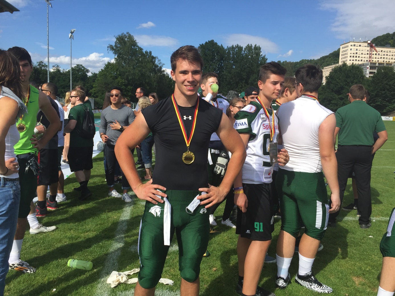 Der Böblinger Niclas Merk ist mit den Schwäbisch Hall Unicorns Deutscher Meister im American Football geworden. Vor der Saison wechselte er von den Holzgerlingen Twisters zur U19 der Unicorns, um im Junior Bowl um den Titel zu spielen. Dafür nahm er zwei bis drei Mal in pro Woche 100 Kilometer Anfahrt zu Training und Spielen auf sich. Der Aufwand hat sich gelohnt. Gegen die Cologne Crocodiles gewann Merk mit seinem Team vor 1750 Zuschauern im Finale mit 24:21 und ist Deutscher Jugendmeister ...