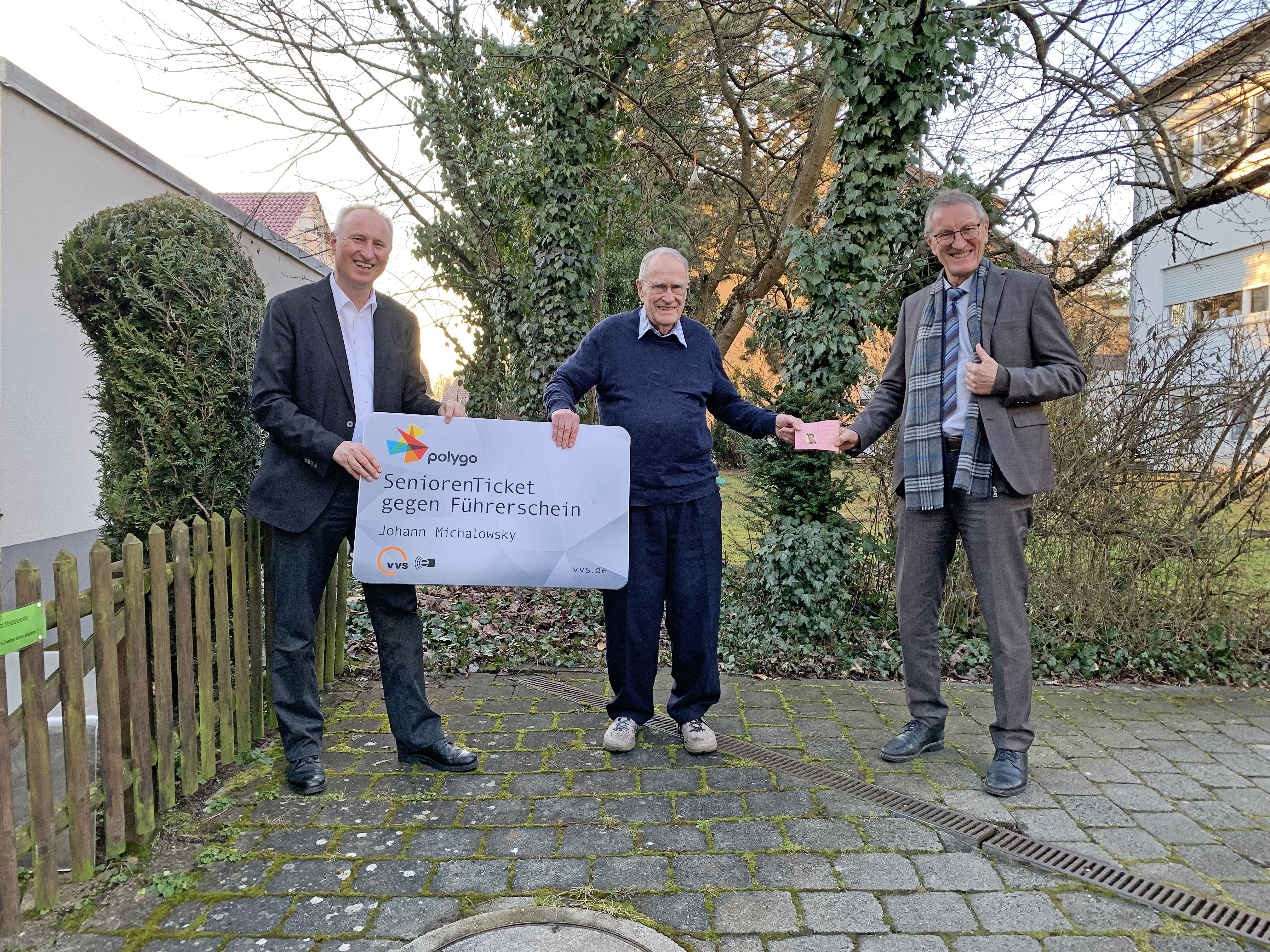 Johannes Michalowsky hatte sich bereits Anfang Dezember als Erster in der Führerscheinstelle des Landratsamtes angemeldet, um das kostenlose Seniorenticket zu erhalten. Der 90-jährige aus Herrenberg nahm das kostenlose VVS-Jahresticket von Landrat Roland Bernhard persönlich entgegen und gab im Gegenzug seinen „Lappen“ ab.