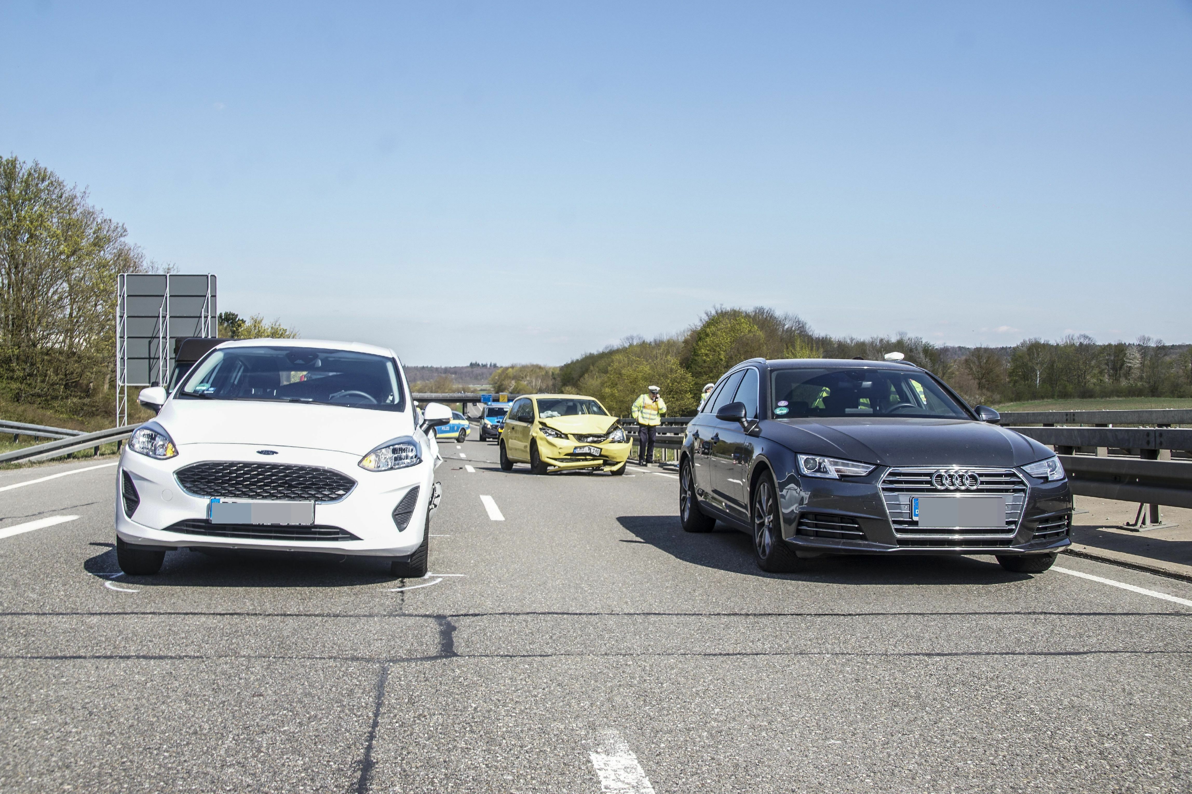 Zwei Verletzte und rund 25.000 Euro Sachschaden sind die Bilanz eines Verkehrsunfalls, der sich am Dienstag gegen 14.40 Uhr auf der Bundesstraße B14 bei Gärtringen ereignete. Ein 55 Jahre alter Seat-Fahrer war von der Autobahn A81 kommend in Richtung Herrenberg unterwegs, und fuhr vermutlich aufgrund überhöhter Geschwindigkeit auf eine vor ihm fahrende 57 Jahre alte Ford-Fahrerin auf. Durch die Wucht der Kollision wurde der Ford auf einen Audi, der in dieselbe Richtung fuhr, geschoben. Der 55-Jährige wurde vom Rettungsdienst mit schweren Verletzungen in ein Krankenhaus gebracht, ebenso wie die Ford-Fahrerin, deren Verletzungsgrad noch nicht bekannt ist. Der 33 Jahre alte Audi-Fahrer und dessen 31-jährige Beifahrerin blieben unverletzt. An den Fahrzeugen entstand Sachschaden in Höhe von insgesamt rund 25.000 Euro. Der Seat und der Ford waren nicht mehr fahrbereit und mussten abgeschleppt werden. Die Fahrbahn der B14 musste bis etwa 15.35 Uhr voll gesperrt werden. Der Verkehr aus Richtung Autobahn wurde umgeleitet. (Bild: SDMG / Dettenmeyer)