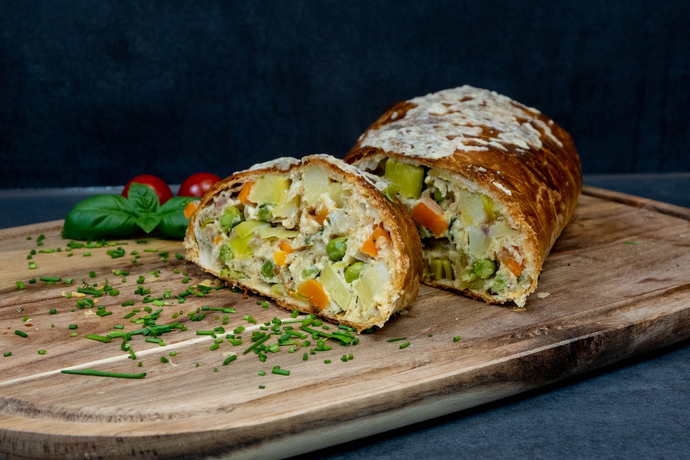 Da liegen noch vier Kartoffelstücke vom Tag zuvor, die halbe Stange Lauch reicht auch nicht mehr für ein ganzes Gericht. Ideal, um als Resteverwertung gemeinsam mit anderem Gemüse einen herzhaften Blätterteigstrudel zu backen. Die leckere Abendmahlzeit lässt sich dank des fertigen Blätterteigs sehr schnell zubereiten und bei der Füllung kann man kreativ werden. Wichtig ist, dass man das Gemisch aus Schmand, Eiern und Käse beibehält. Das hält Lauch, Möhren, Erbsen oder auch mal ein paar Brokkoli- ...