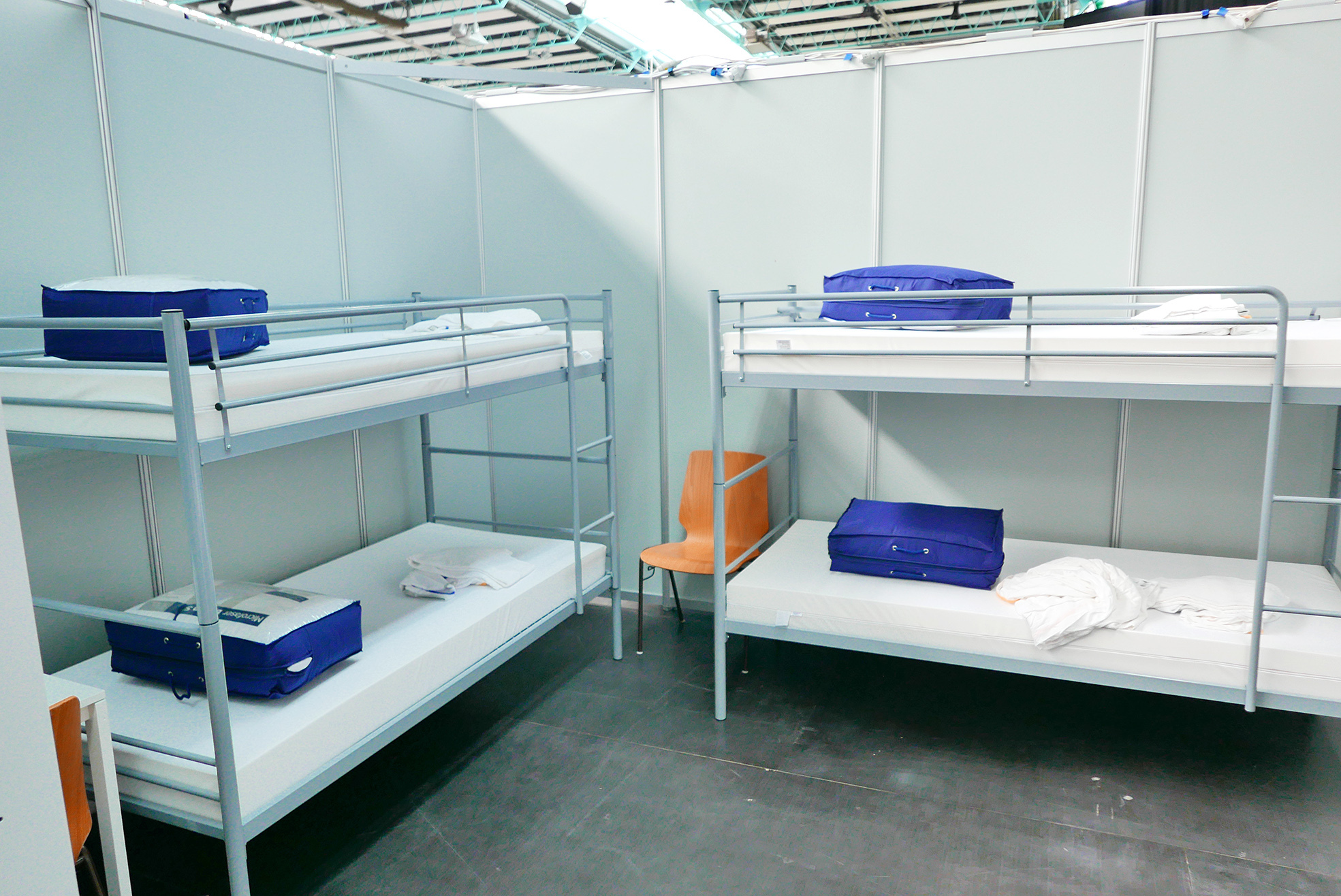 Але спортивні зали продовжують використовуватися як екстренне житло – спочатку в школі Готліба-Даймлера в Зіндельфінгені та в Леонберзі, де загалом можуть розміститися 240 осіб. Навпаки, скляний палац, який планували лише як екстренне житло до кінця серпня і розрахований на 400 осіб наприкінці березня, має бути знову розчищений наприкінці травня і повністю очищений до середини червня. Адміністратор району також говорить про «конфлікт інтересів» з організаторами як причину та питання про те, хто несе ризик у разі скасування заходу (докладніше про скасування та перенесення див. «Програма в Скляному палаці» нижче).