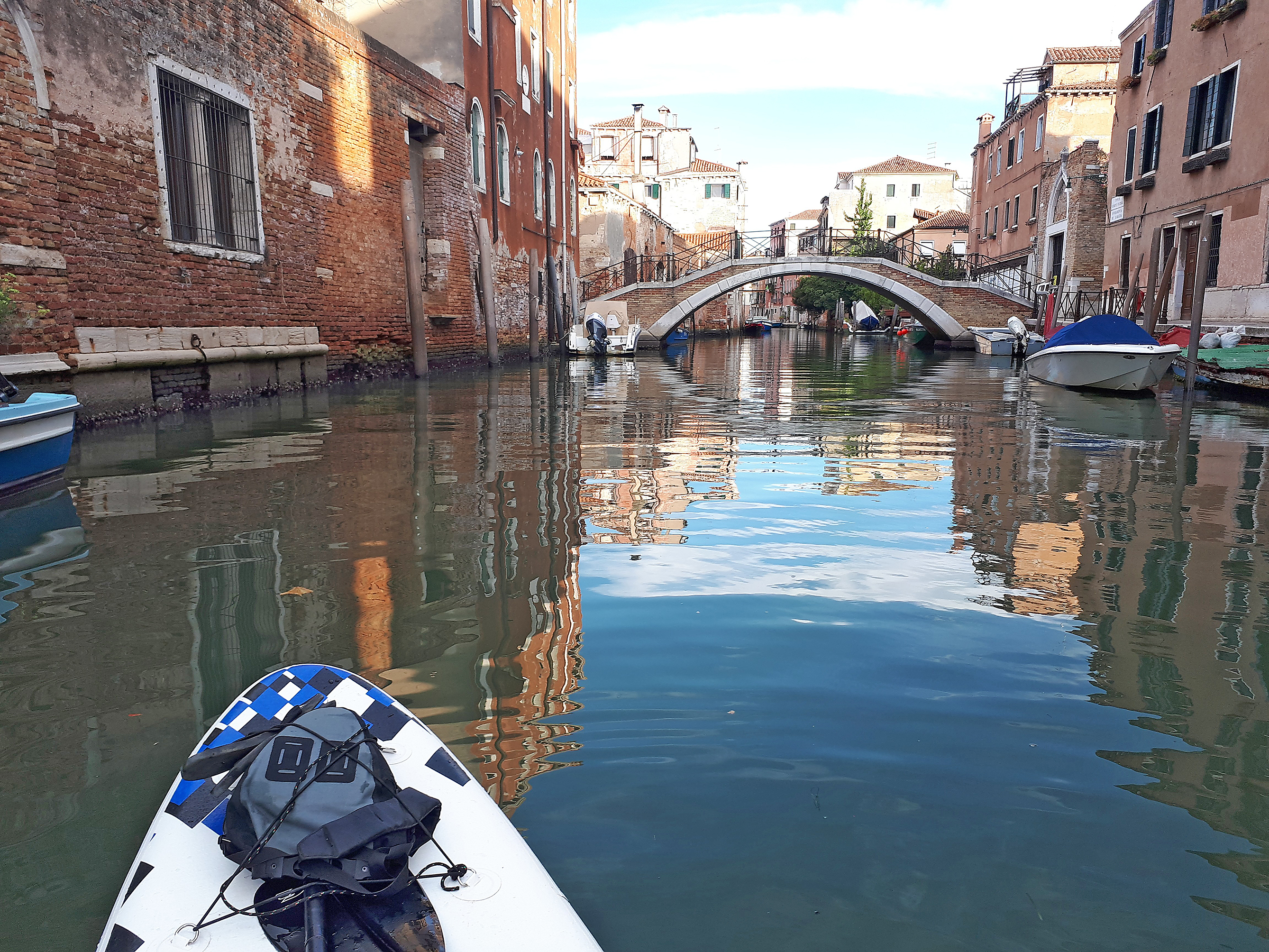 Venedig am Morgen - Es ist sieben Uhr. Kaum ein Mensch ist zu sehen. Langsam fällt das Licht in die Kanäle. Die Boote im Ortsteil Cannareggio sind noch angebunden. Die Häuser spiegeln sich in der ruhigen Wasseroberfläche. Es ist ungewöhnlich still in der Lagunenstadt, die sonst voller Leben ist. Die Stimmung liegt irgendwo zwischen morbide und meditativ. Auf der einen Häuserseite geht ein Fenster auf. Die Bewohnerin grüßt freundlich in Richtung Kanal. Dort befindet sich Harald Kümmel auf seiner ...