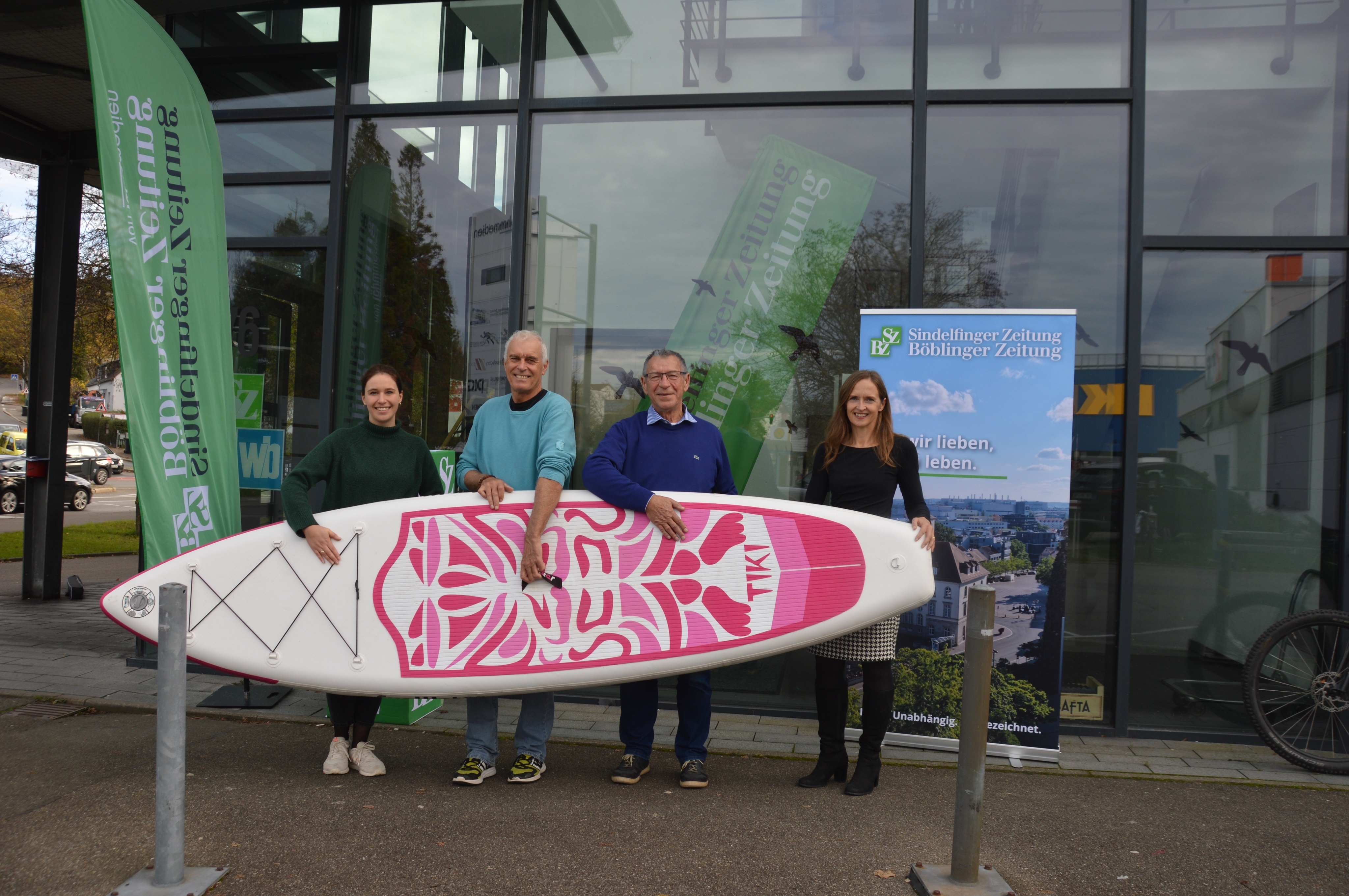 Am 8. November war es so weit: Franziska Becker-Eckensberger, Koordinatorin Kinder- und Jugendhospizdienst, Kurt Koblowsky, Vorsitzender der Waisenhilfe Nepal Böblingen, Carmen Bühl, Stellvertretende Vorsitzende von Nachbarn in Not und Harald Kümmel trafen sich zur Spendenübergabe im Verlagsgebäude der SZ/BZ in Sindelfingen.