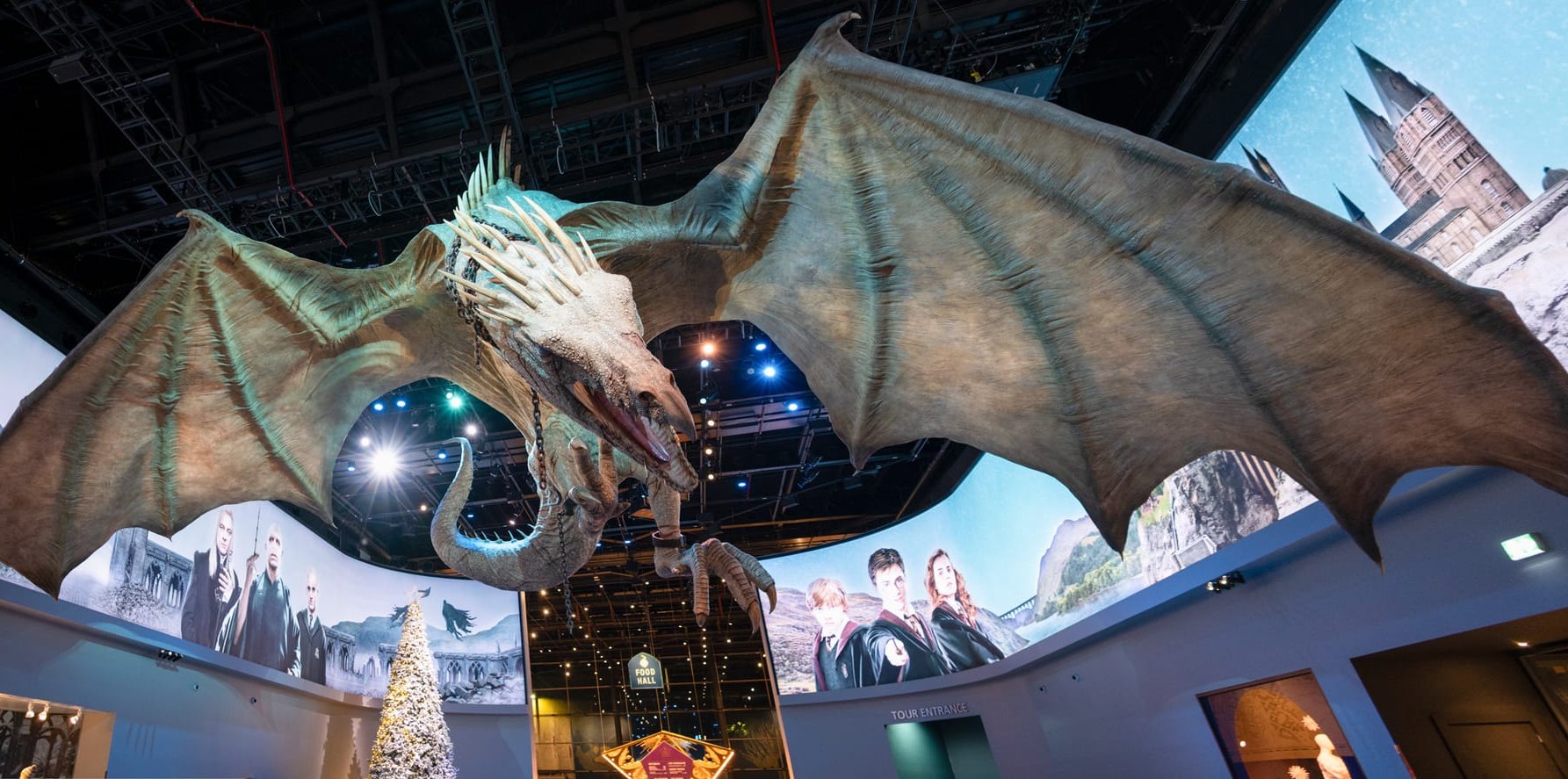 Bereits bevor man in die eigentlichen Hallen geht, erwartet der ukrainische Eisenbauch aus Harry Potter und der Feuerkelch die Besucher. Gewaltig schwebt er über einem und schaut ...