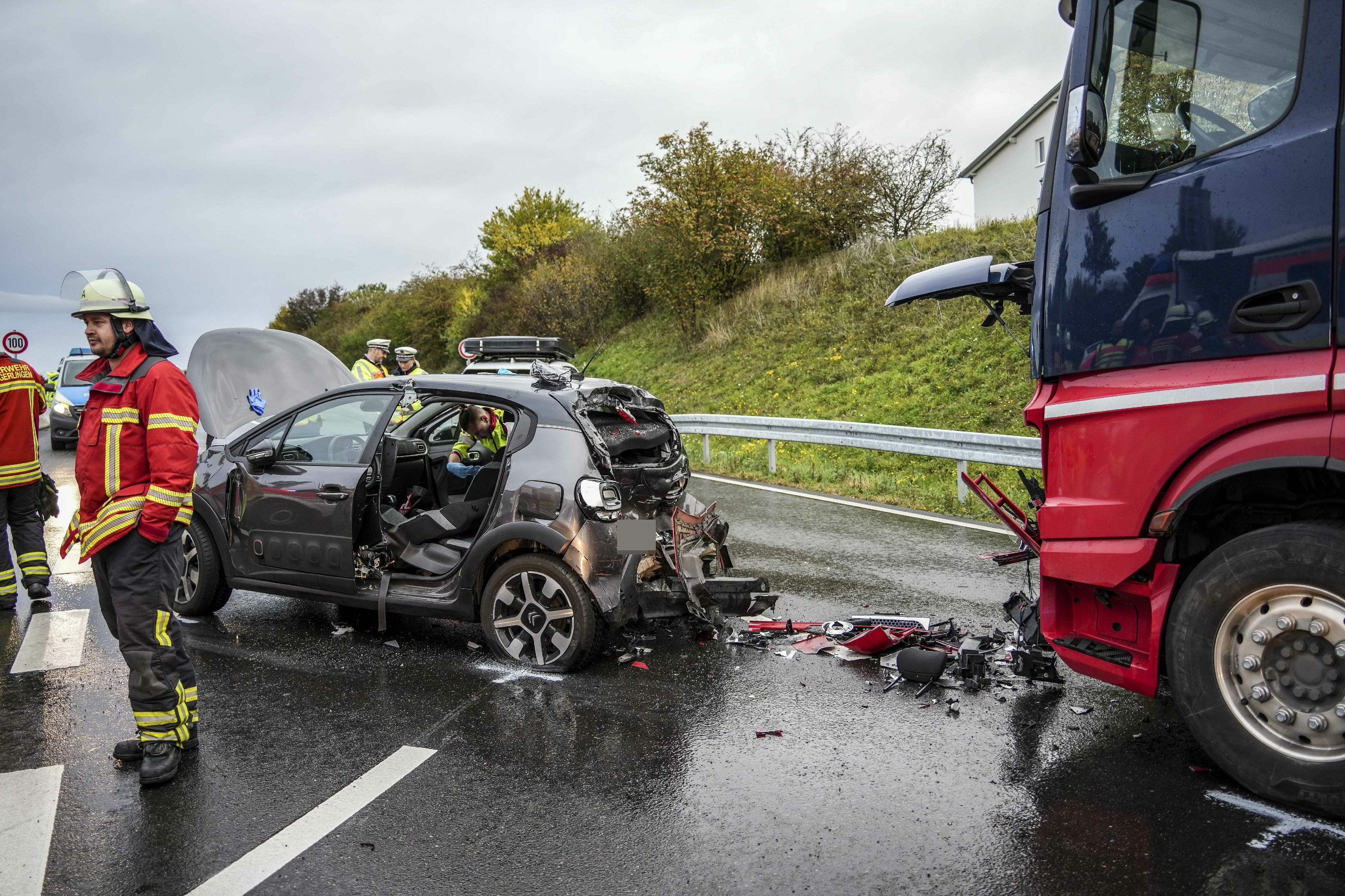 Durch die Kollision wurde die Autofahrerin in ihrem Fahrzeug eingeklemmt. Sie wurde schwer verletzt, der Lkw-Fahrer wurde leicht verletzt.