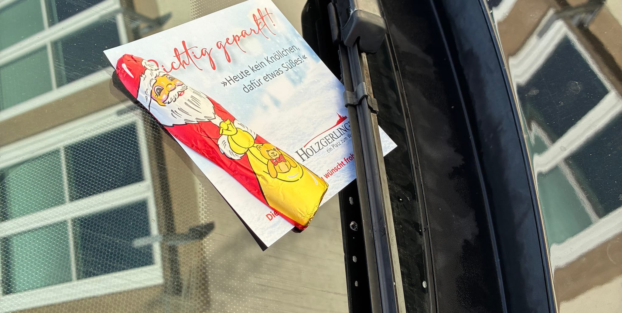 Holzgerlingen. Die und Mitarbeiter des Holzgerlinger Ordnungsamts haben sich eine nette Weihnachtsaktion ausgedacht: Dieses Jahr gibt es für von Weihnachtseinkäufen gestresste Menschen, die in Holzgerlingen mit dem Auto unterwegs sind, die Möglichkeit, eine kleine Überraschung zu bekommen.
