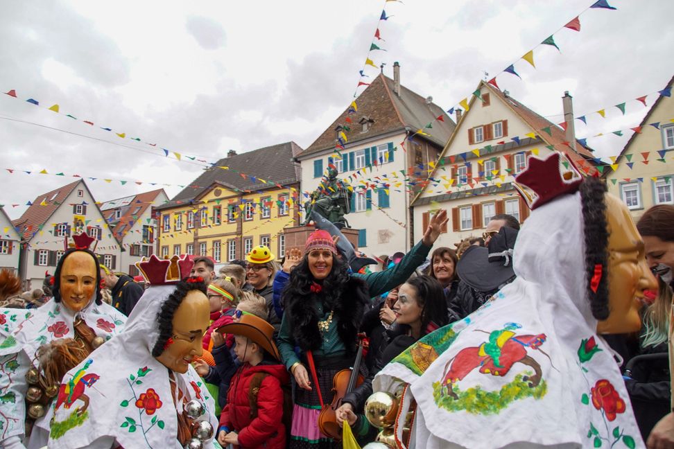 70 Gruppen. 25 Wagen. Unzählige Hästräger aus 22 Zünften. 25 Musikensembles. Und mehr als 40 000 an den Straßenrändern begeistert und fröhlich mitfeiernde Zuschauer. Mehr als zwei Stunden lang zog sich die närrische Karawane durch die historische Altstadt. Die traditionsreiche Veranstaltung der Narrenzunft Weil der Stadt am Sonntag war einer der Superlative. „Ein gigantischer Umzug mit schönen Gruppen und Wagen“, sprach Dieter Oelschläger, der am Marktplatz moderierte, den Besuchern aus dem Herzen.