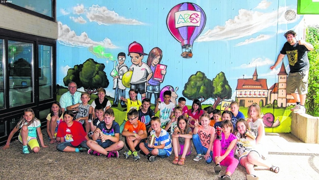 **Die Klasse 4b der Adolf-Rehn-Grundschule hinterlässt einen bleibenden Eindruck, wenn sie nach den Ferien in die weiterführenden Schulen geht. Haben die Kinder doch gemeinsam mit ihrer Klassenlehrerin Annika Lauff und dem Graffitikünstler Maximilian Frank den Eingangsbereich der Schule mit einem Graffiti verschönert. **