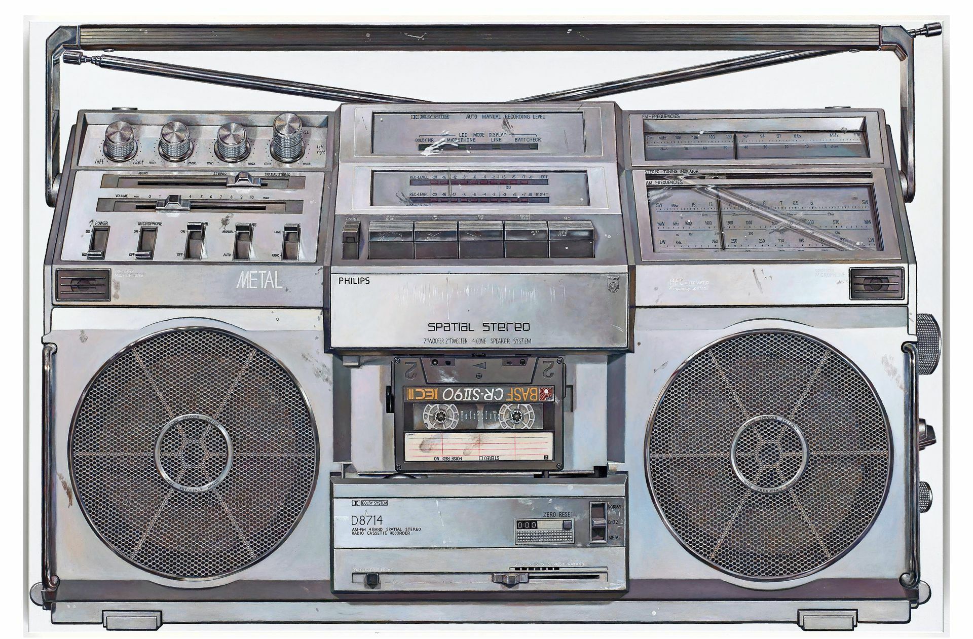 Kornwestheim - Jetzt hat man sich doch noch von ihm reinlegen lassen. Es ist unübersehbar, dass René Wirths fotorealistisch malt. Auf riesigen Flächen hat er zum Beispiel einen Kassettenrekorder so präzise ...