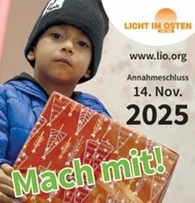 Die Lage vor Ort ist ernst: Krisen und Armut machen selbst Alltagsprodukte zum Luxus. Die Päckchen bringen nicht nur praktische Hilfe, sondern auch ein starkes Zeichen: „Du bist nicht vergessen!“ Verteilt werden sie von Partnern direkt in Heimen, Schulen und Dörfern – mit einer Portion Nächstenliebe und der frohen Weihnachtsbotschaft im Gepäck. Keine Zeit zum Packen? Mit einer Spende von 32 € übernimmt LICHT IM OSTEN das für dich. Alle Infos zur Aktion und zur Sammelstelle in deiner Nähe gibt’s auf www.lio.org. Mach mit – und werde Hoffnungsbote!