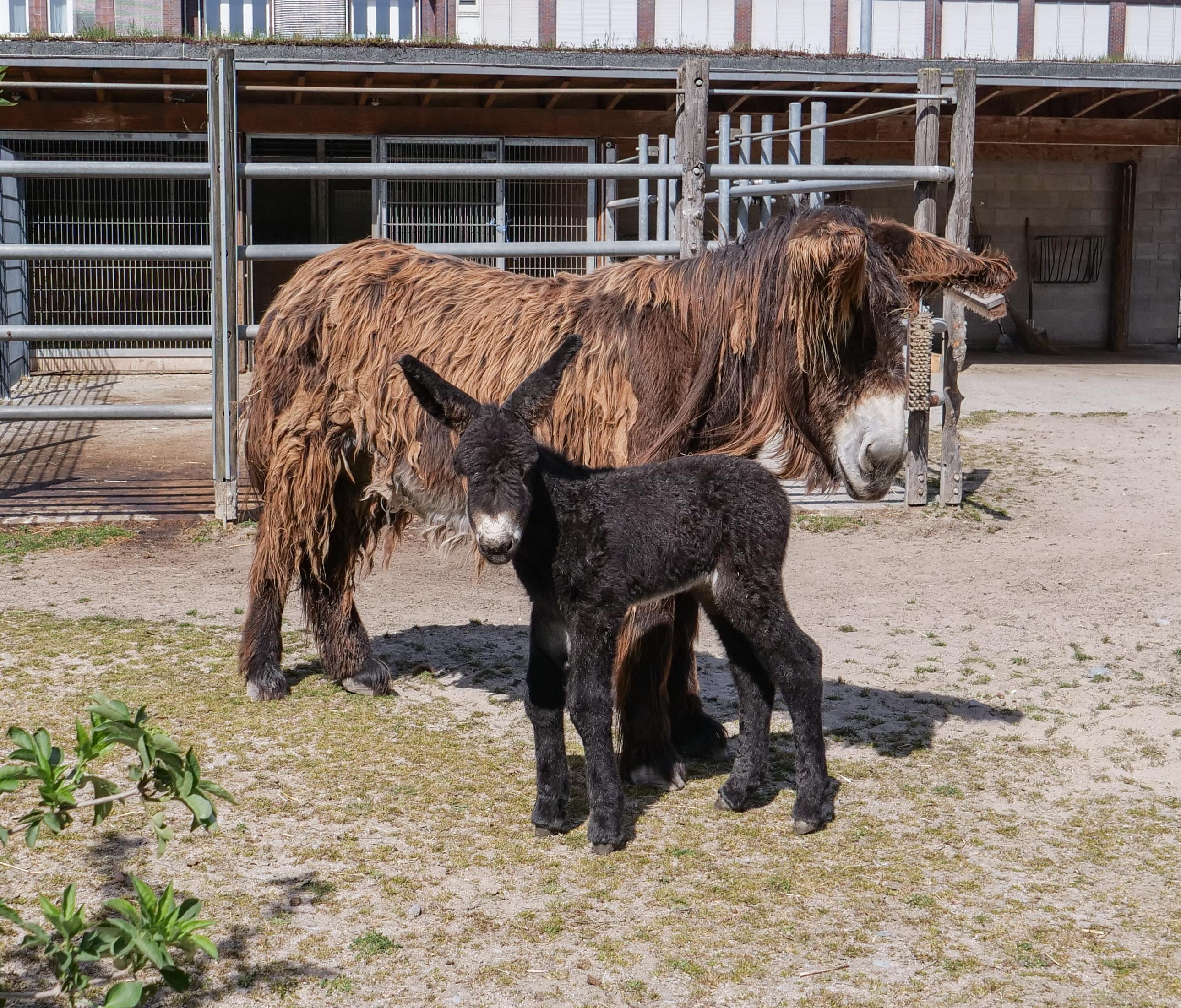 Bei den Poitou-Eseln der Stuttgarter Wilhelma wurde am Ostersonntag ein Stutfohlen geboren.