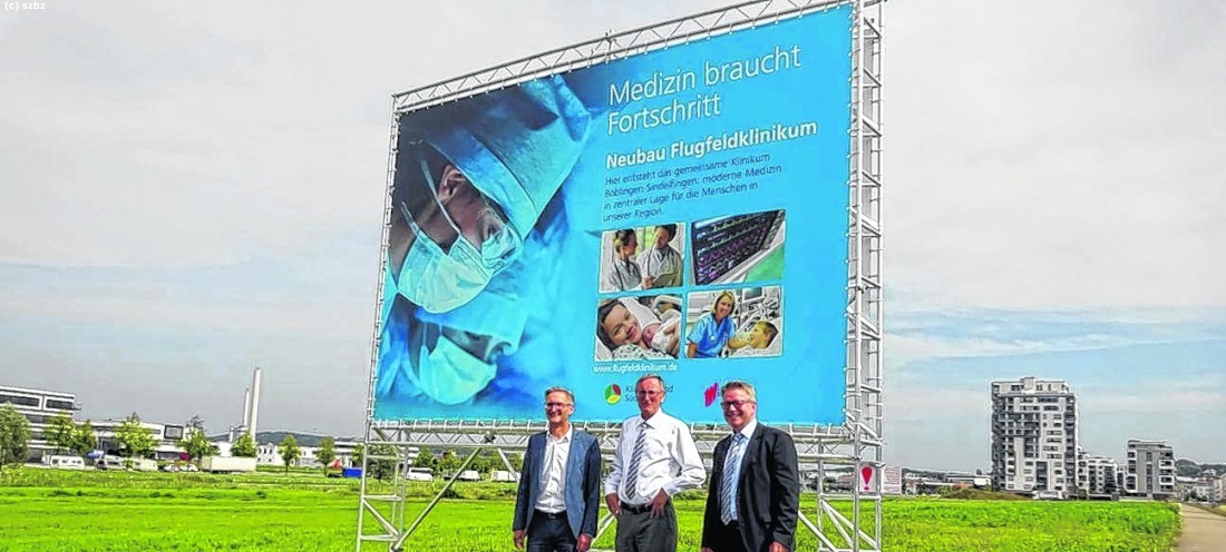 **Von Baggern und Baumaschinen ist auf dem Flugfeld noch nichts zu sehen. Der Spatenstich für die Flugfeldklinik soll erst im Januar 2020 erfolgen. Gestern aber wurde schon das Bauschild für das rund ...